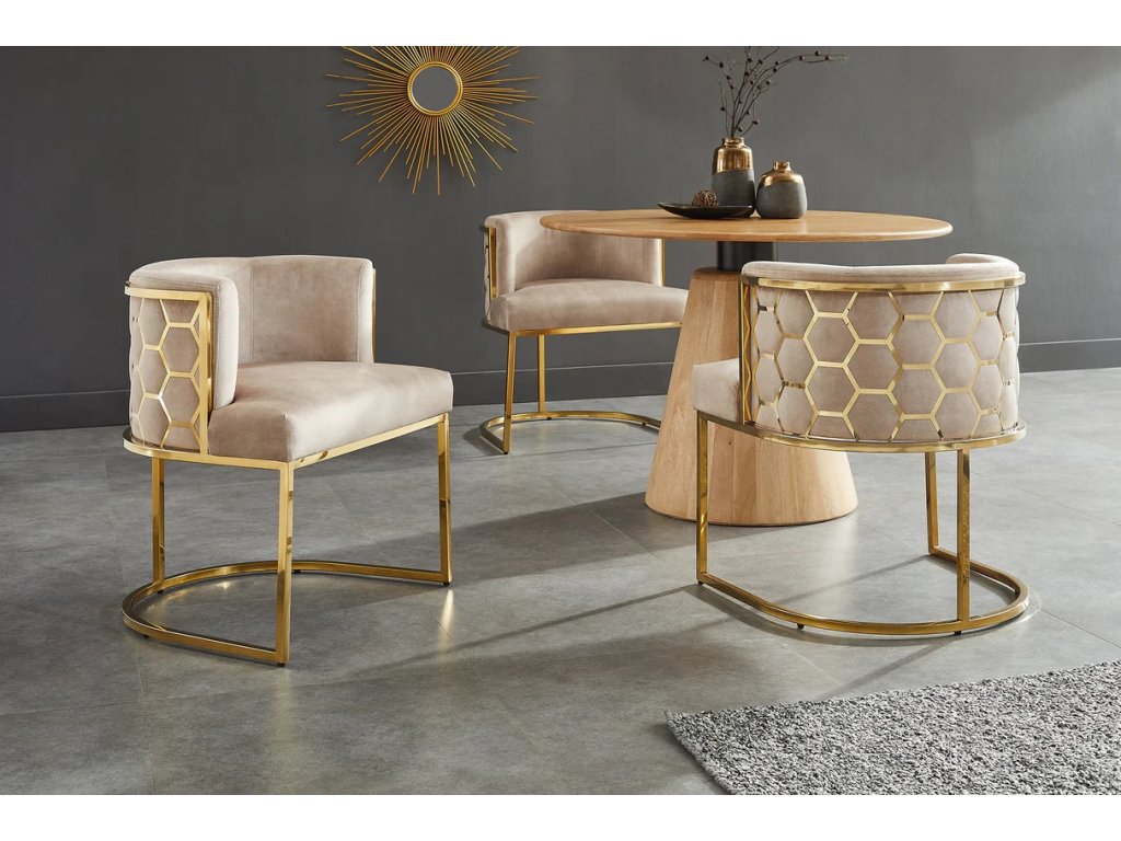 Designová Art-Deco židle Enna Gold béžová