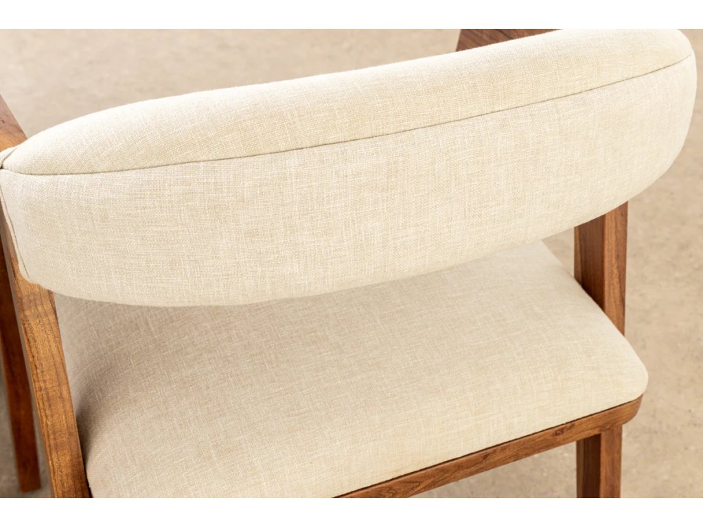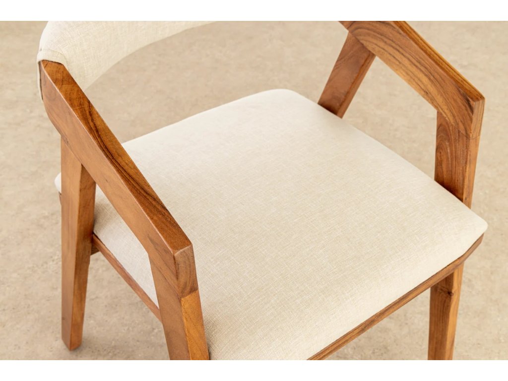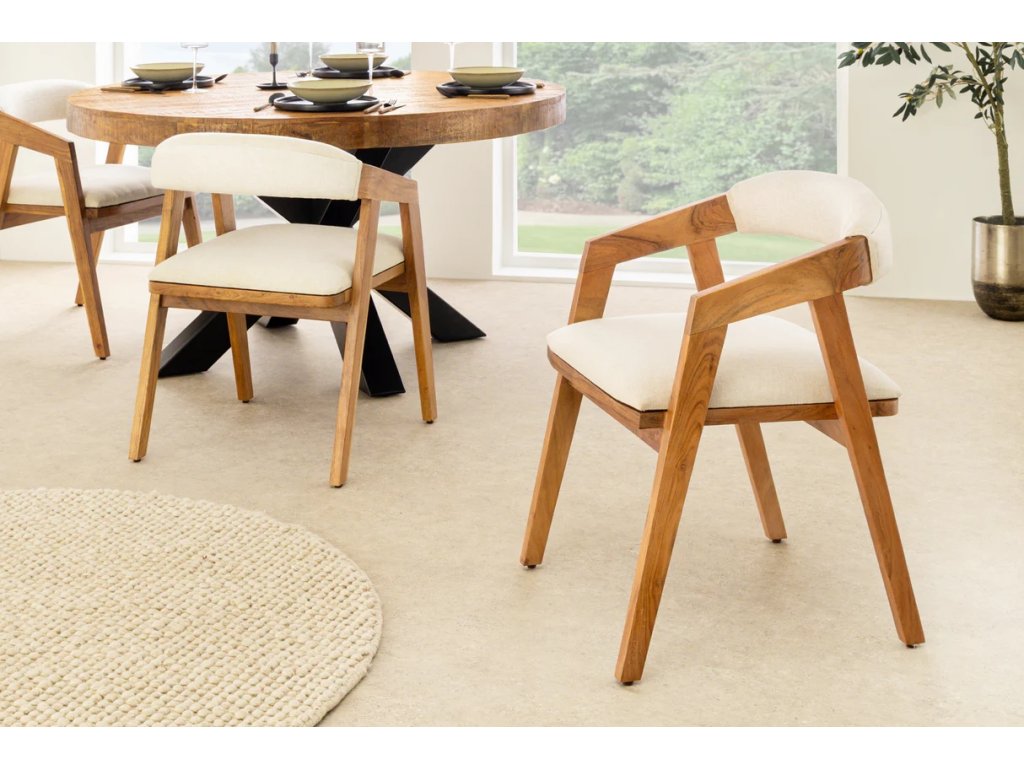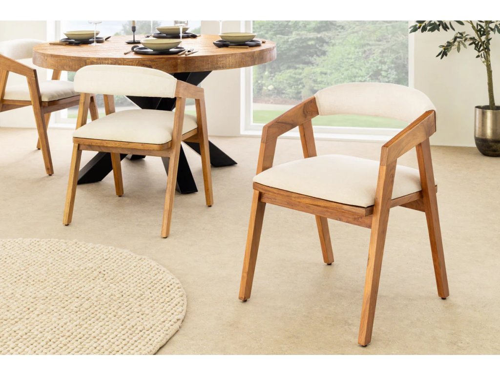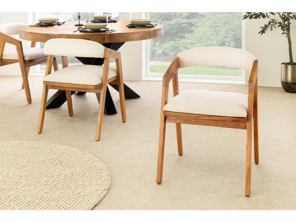 Přírodní židle Mammut spojuje robustní konstrukci z masivního akáciového dřeva s lehkým a pohodlným čalouněním. Teplý medový odstín dřeva s lakovaným povrchem zvýrazňuje přirozenou kresbu a dodává interiéru útulný charakter. Sedák potažený hladce tkanou látkou v světlém tónu zajišťuje komfort při sezení a zároveň působí moderně a vzdušně. Díky pevné konstrukci a nosnosti až 120 kg je židle Mammut vhodná pro každodenní použití a snadno se začlení do různých typů interiérů – od přírodních přes skandinávské až po moderní.
