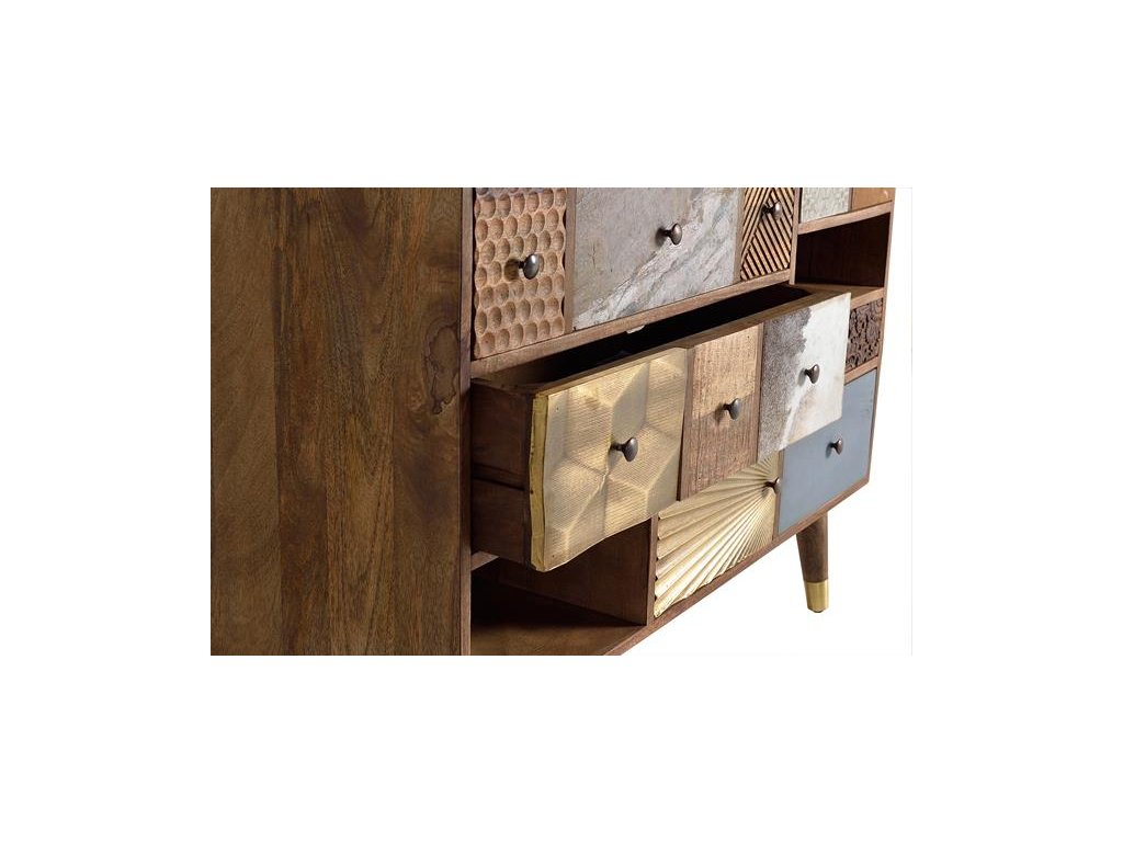 Designová komoda Daniela je elegantní a zároveň funkční nábytkový prvek, který obohatí každý moderní interiér. Vyrobená z kvalitního masivního mangového dřeva, vyniká svojí přirozenou texturou, teplým tónem a dlouhou životností. Precizně zpracované detaily a čisté linie jí dodávají současný a nadčasový vzhled, který se hodí do různých stylů bydlení – od minimalistického až po industriální. S praktickým úložným prostorem v podobě zásuvek a skříněk nabízí ideální řešení pro uskladnění oblečení, dokumentů či doplňků. Komoda Daniela je nejen praktickým kouskem, ale také designovým doplňkem, který zvýrazní charakter místnosti. Tento kousek je perfektní volbou pro ty, kteří ocení kvalitu přírodního dřeva, moderní design a trvanlivost v jednom elegantním balení.
