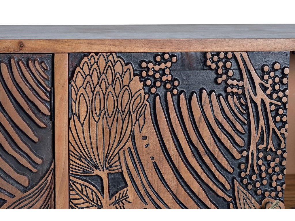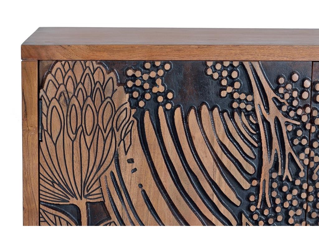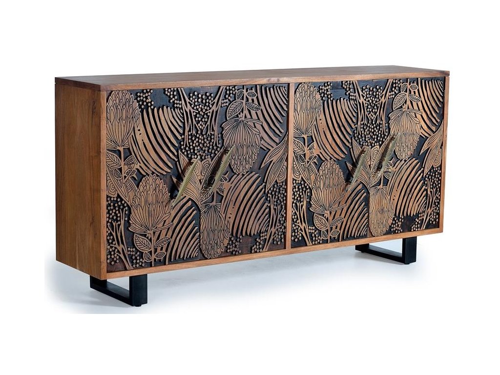 Skříňka Tropicana je dokonalým spojením orientálního designu a řemeslné preciznosti. Vyrobená z masivního akáciového dřeva a ručně vyřezávaná, tato skříňka nabízí nejen krásu, ale také stabilitu a dlouhou životnost. Její detailní vyřezávané vzory a elegantní vzhled dodají každému interiéru nádech exotiky a sofistikovanosti. Skříňka Tropicana je ideální pro ty, kdo hledají nábytek s nezaměnitelným charakterem, který kombinuje stylový vzhled s praktickým úložným prostorem. Tento masivní a designový kousek je skvělým doplňkem do obývacího pokoje, chodby nebo ložnice, kde zaujme každého návštěvníka a vytvoří nezapomenutelnou atmosféru.