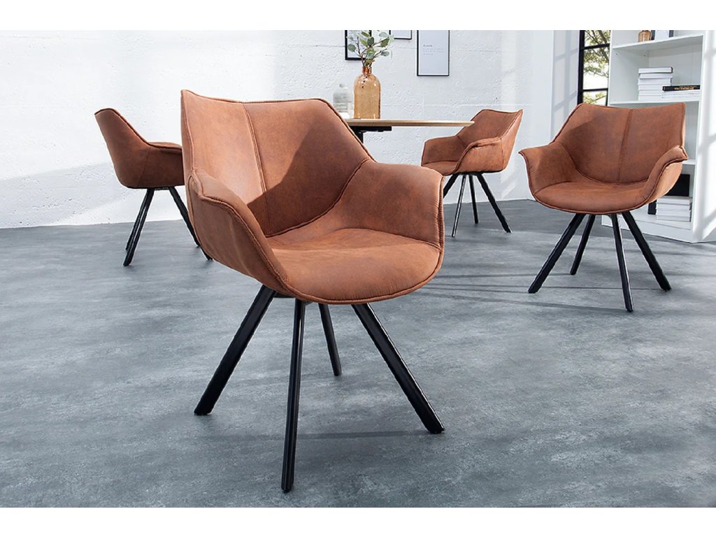 Židle Ferrante kombinuje vintage vzhled s moderními funkcemi. Potah z odolného mikrovlákna s dekorativním prošíváním je příjemný na dotek a snadno se udržuje. Ergonomicky tvarovaný sedák a integrované područky zajišťují pohodlí i při dlouhém sezení. Čtyřramenná kovová podnož s černým práškovým lakem dodává židli stabilitu a podtrhuje její industriální charakter.