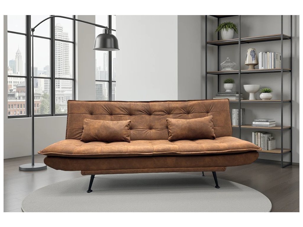 Moderní rozkládací pohovka Limpiara dodá interiéru teplo, charakter a nadčasový styl. Čalounění z jemného hnědého mikrovlákna je příjemné na dotek, snadno se udržuje a působí útulně v každém obývacím prostoru. Kvalitní pěnové polstrování zajišťuje komfort při sezení i odpočinku, zatímco jednoduchý rozkládací mechanismus umožňuje rychlou proměnu pohovky v lůžko pro příležitostné přespání. Stabilní kovové nohy v černém provedení a pevný rám z borovicového dřeva zaručují dlouhou životnost a spolehlivost. Součástí balení jsou dva polštáře, které zvyšují pohodlí i celkový estetický dojem. Pohovka Limpiara je ideální volbou pro moderní i klasické interiéry, kde se snoubí funkčnost s elegantním designem.