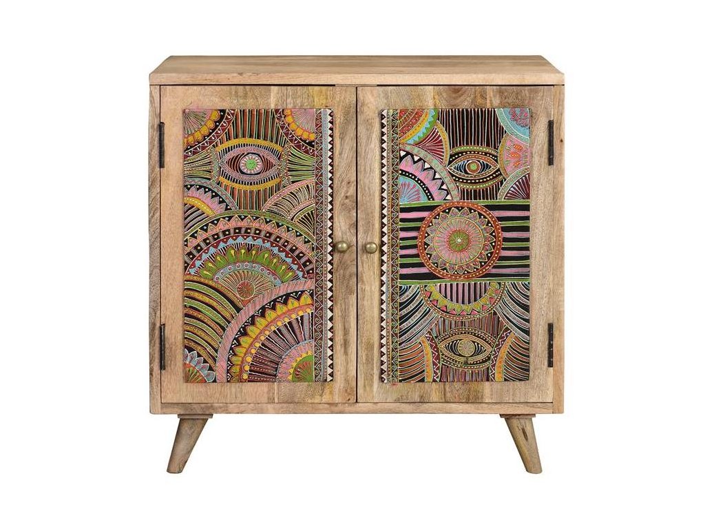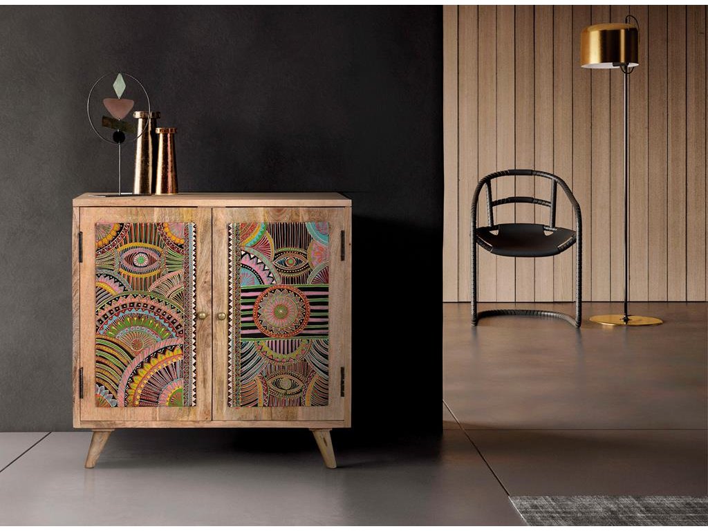 Skříňka Karolina je nádherným příkladem řemeslného umění spojeného s orientálním designem. Vyrobeno z kvalitního mangového dřeva zaručuje pevnost, stabilitu a dlouhou životnost. Její hlavní dominantou jsou bohaté ručně malované detaily, které v kombinaci s pestrými barvami vytváří unikátní a živý vzhled. Skříňka je ideálním doplňkem do interiérů s boho, etno nebo vintage prvky, kde vynikne jak praktický i dekorativní solitér. Karolina přináší do prostoru nejen úložný prostor, ale také teplo, osobitost a nádech exotiky.