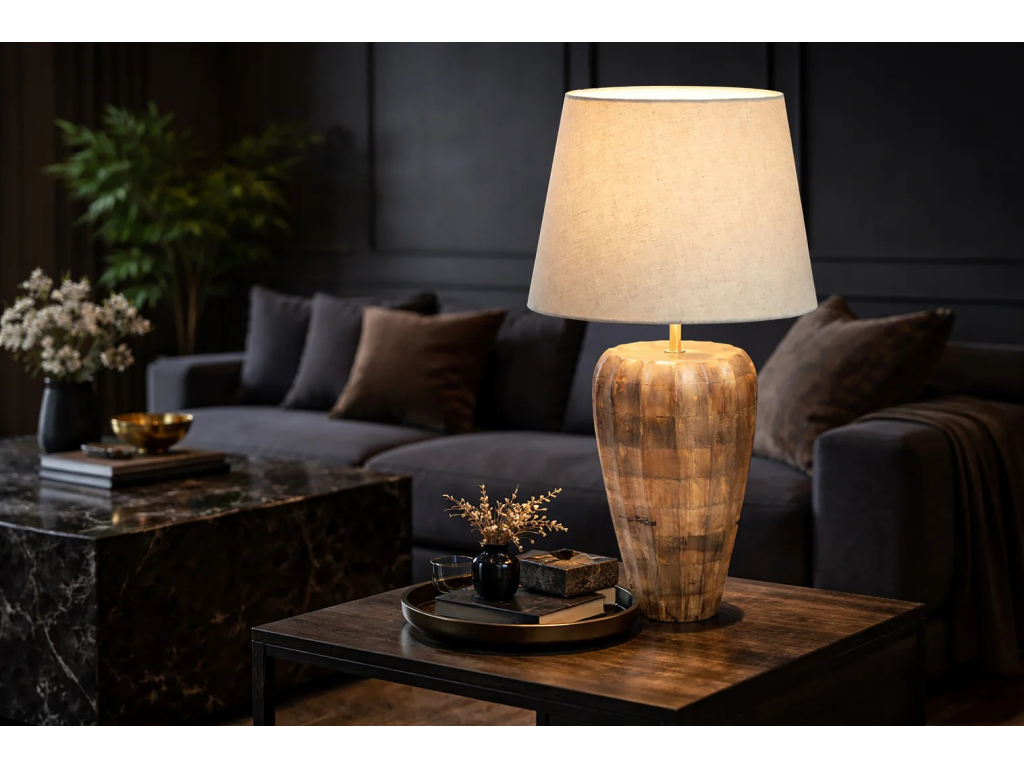 Stolní lampa Gola přinese do vašeho domova kus nespoutané přírody. Podstavec lampy je tvořen z pečlivě vybraného mangového dřeva, které si díky ručnímu zpracování zachovává svou autentickou strukturu a patinu – každý kus je tedy naprostým originálem. Přírodní vzhled vkusně doplňuje kvalitní textilní stínidlo ze lnu, které vytváří hřejivé a neoslňující světlo. Tato lampa se stane dominantou každého obývacího pokoje, ložnice či pracovny laděné do rustikálního nebo koloniálního stylu.