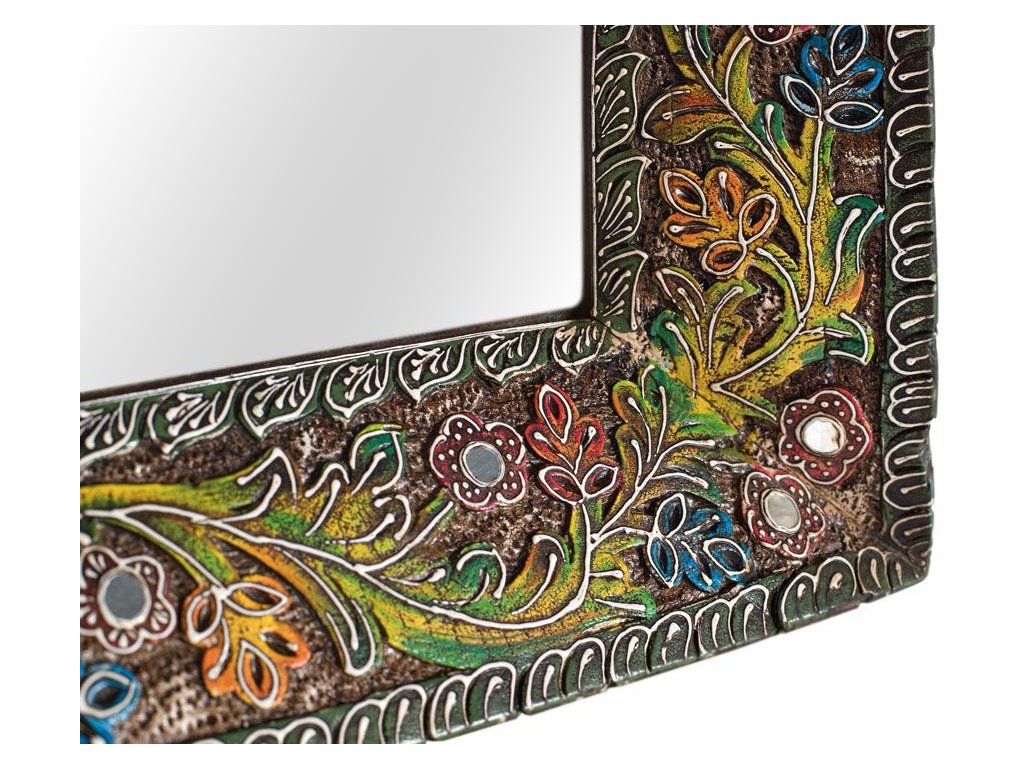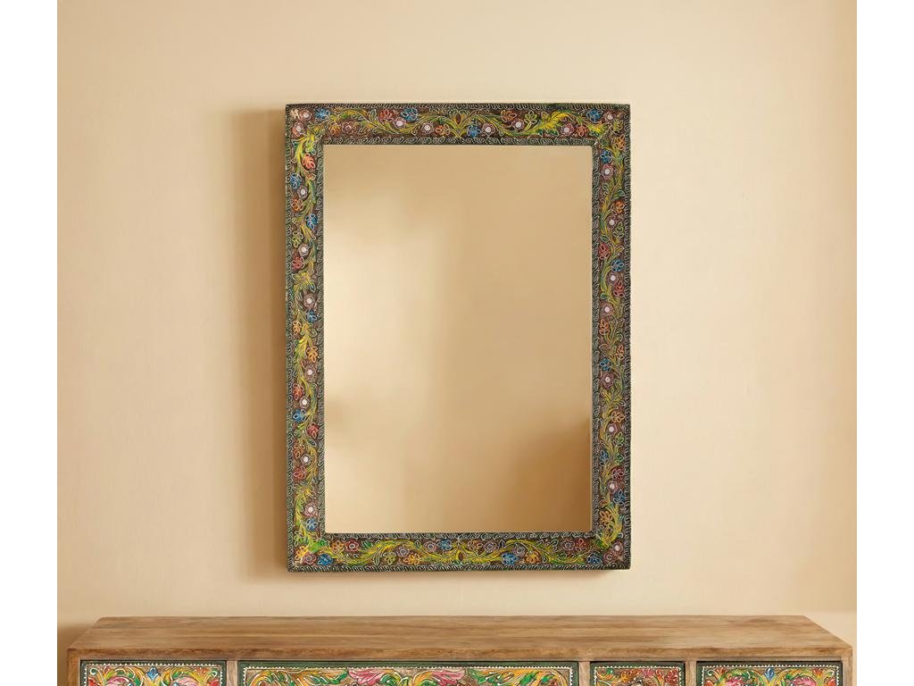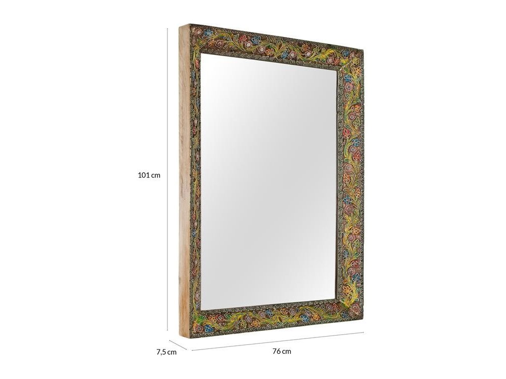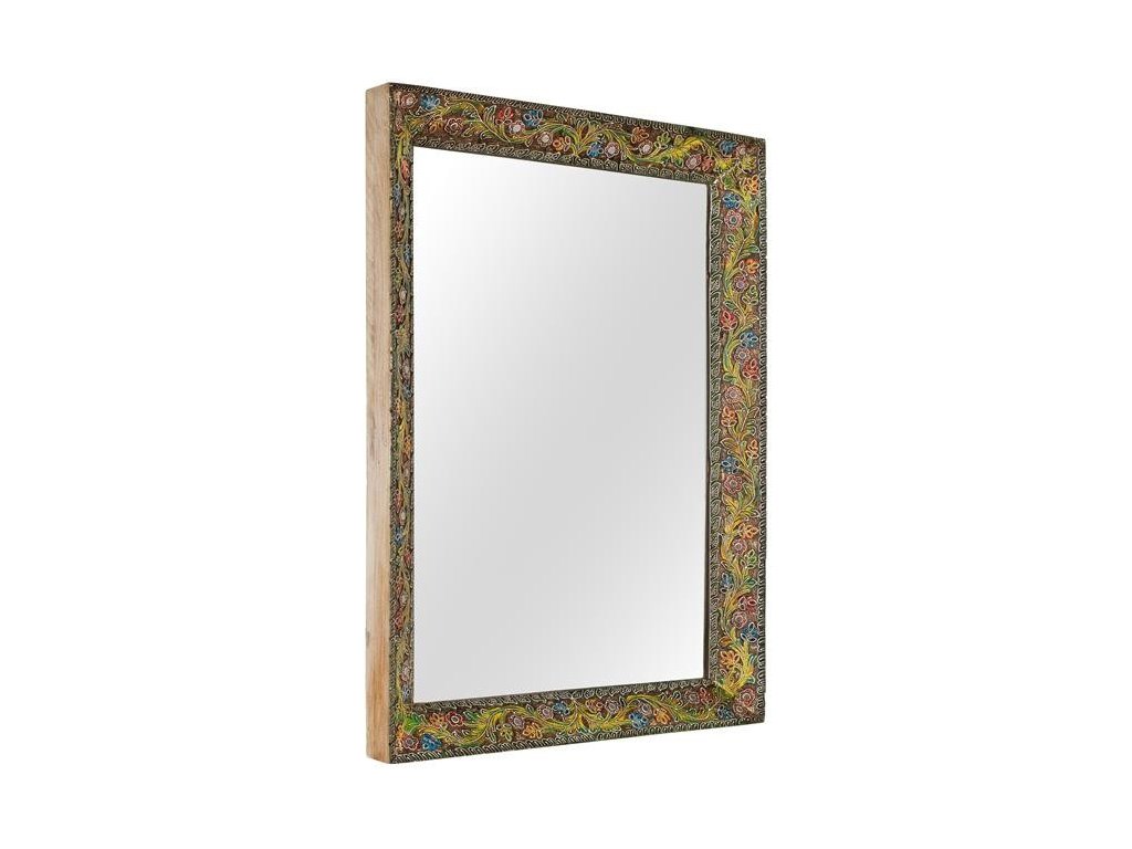 Tento unikátní kousek z kolekce Java je skutečným uměleckým dílem. Masivní dřevěný rám je bohatě zdoben etnickými květinovými motivy. Zrcadlo prostor opticky zvětší, prosvětlí a zároveň poslouží jako nepřehlédnutelný designový prvek. Díky praktickému zpracování jej můžete na zeď zavěsit horizontálně i vertikálně přesně podle vašich potřeb.