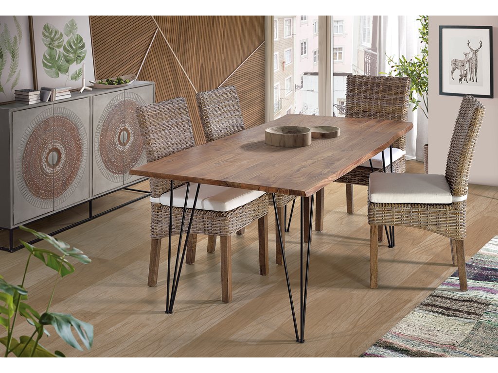 Designový jídelní stůl Adéla vyniká čistými liniemi a kontrastem mezi teplým tónem masivního akáciového dřeva a industriálním kovovým podnožím. Tento stůl spojuje moderní funkčnost s robustní elegancí, díky čemuž se stává dominantním prvkem každé jídelny či obývacího prostoru. Akáciové dřevo je známé svojí tvrdostí, odolností a výraznou kresbou, díky čemuž je každý kus originál. Stůl Adéla je ideální volbou pro ty, kteří hledají kvalitní nábytek s charakterem a designovým výrazem.