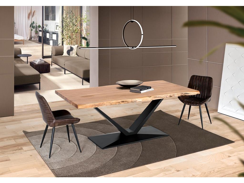 Jídelní stůl Ximena přináší do interiéru spojení přirozené krásy akáciového dřeva a surové estetiky industriálního stylu. Masivní dřevěná deska s bohatou kresbou a robustní kovová podnož vytvářejí harmonický kontrast mezi teplem přírody a chladem kovu. Stůl Ximena je ideálním centrem rodinných setkání i stylových večeří, přičemž nabízí nejen vysokou odolnost, ale také nezaměnitelný charakter. Tento designový kousek perfektně doplní moderní, industriální i rustikálně laděné prostory a stane se dominantou vašeho interiéru.