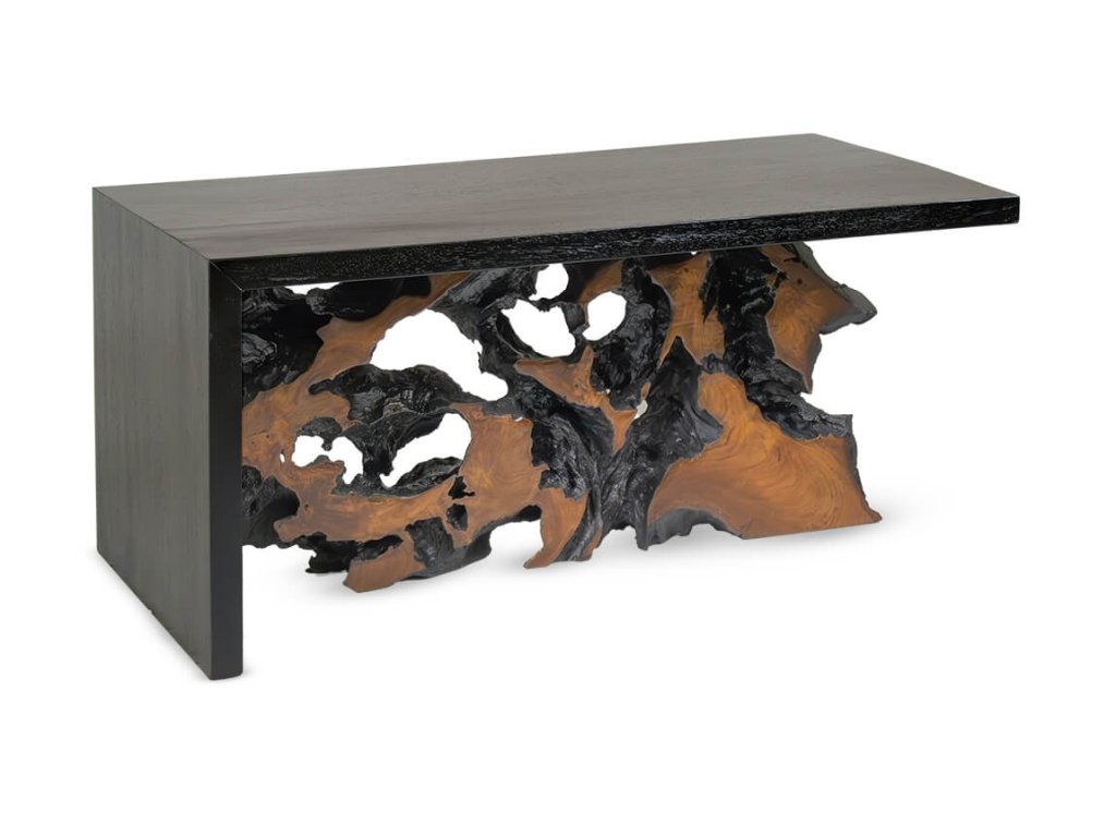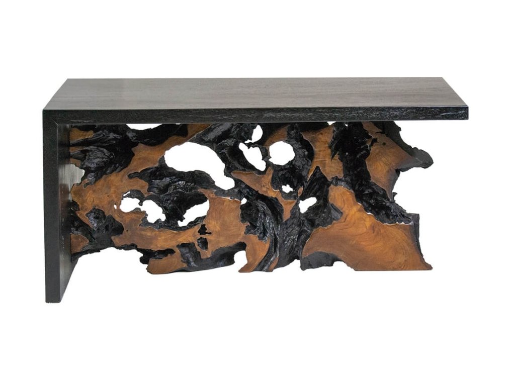 Stolek Aluminian kombinuje přírodní krásu teakového dřeva s robustností kořenovou konstrukcí, což mu dodává výrazný designový charakter. Ruční výroba zajišťuje originalitu každého kusu. Díky svým rozměrům (110 × 60 × 50 cm) je praktickým doplňkem do obývacího pokoje, kde poslouží jako funkční konferenční stolek i dekorativní prvek. Povrch je odolný, snadno se udržuje a zachovává přirozený vzhled exotického dřeva. Stolek je dodáván kompletně smontovaný, takže jej lze ihned začlenit do interiéru.
