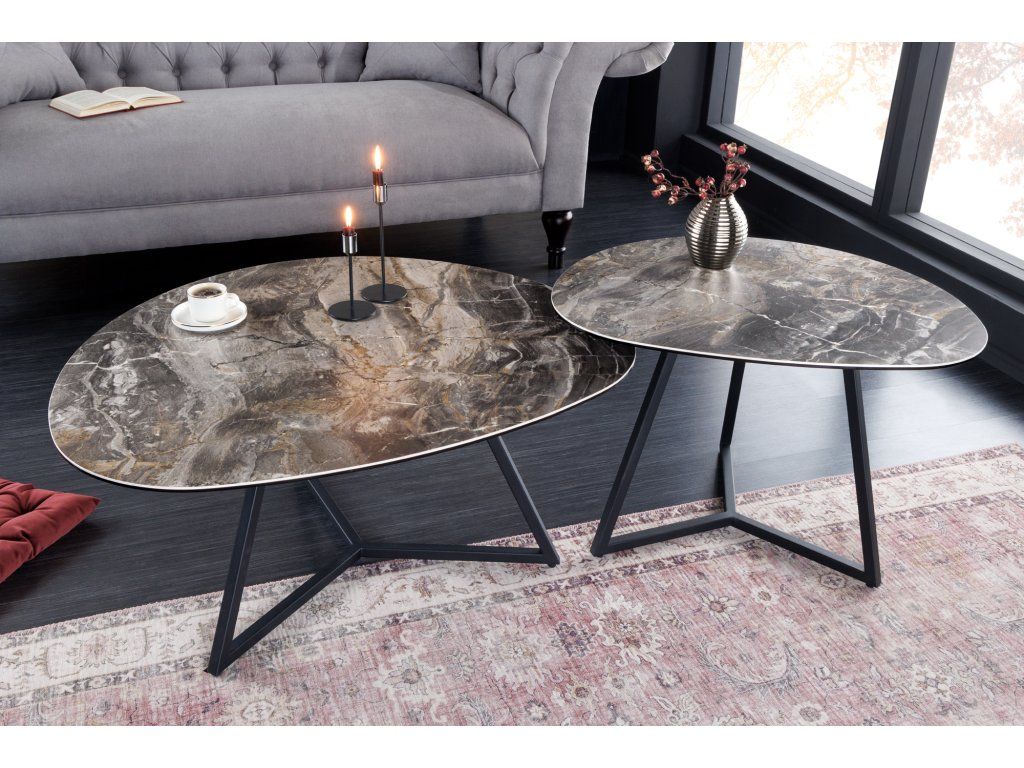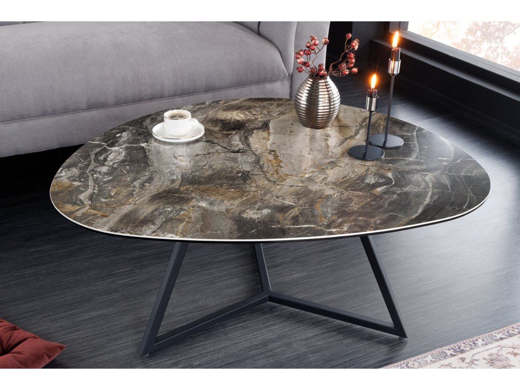 Designový konferenční stolek Discover 90cm s dekorem taupe mramoru sklokeramické desky.