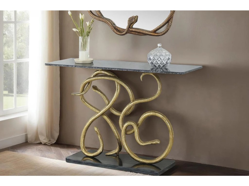 Poison není jen stolek – je to umělecké dílo. Jeho elegantní mramorová deska přináší do prostoru pocit luxusu a nadčasovosti, zatímco pozornost okamžitě strhne unikátní kovová podnož ve zlaté barvě, připomínající spleť hadích těl. Tento designový detail vytváří nezaměnitelný vizuální efekt, který v interiéru působí jako sochařský prvek. Konferenční stolek Poison je ideální pro ty, kdo touží po nábytku s osobností v odvážném, sofistikovaném a výjimečném stylu.