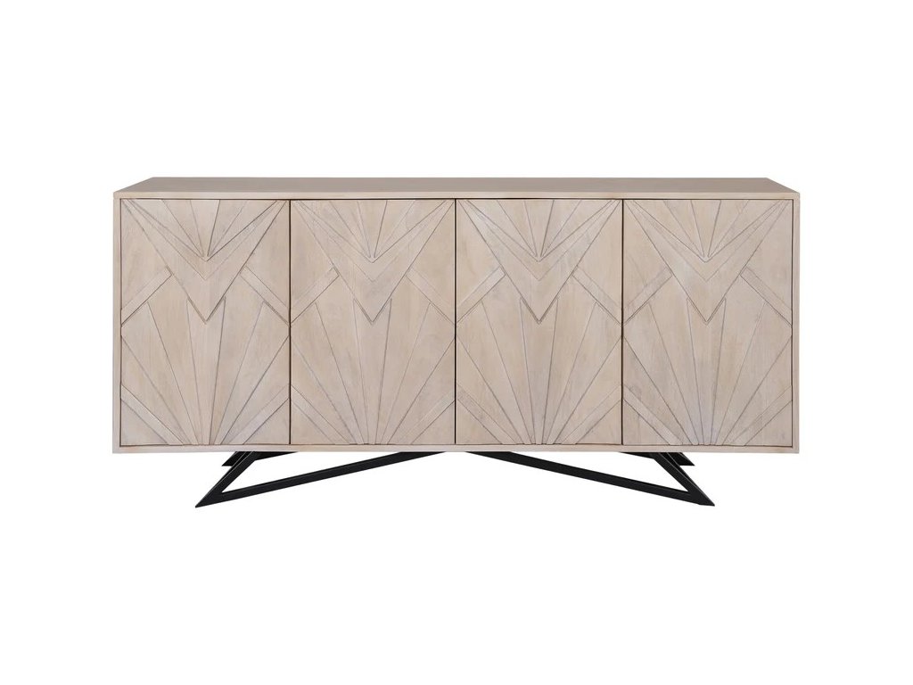 Příborník Radegallio o délce 170 cm nabízí dostatek úložného prostoru díky prostornému korpusu z MDF a výrazným dvířkům z manga dřeva s unikátním 3D designem v bílém washed odstínu. Rám je vyroben z práškově lakovaného železa, které zajišťuje pevnost a stabilitu. Tento kousek dokonale doplní orientální a současné interiéry, kde vynikne jeho osobitý styl a prvotřídní materiály.