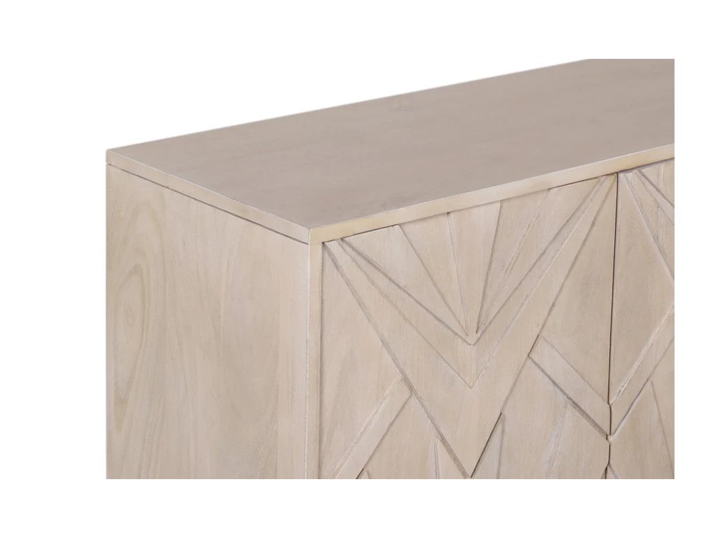 Přední část: mangové dřevo s 3D efektem, bílá washed úprava