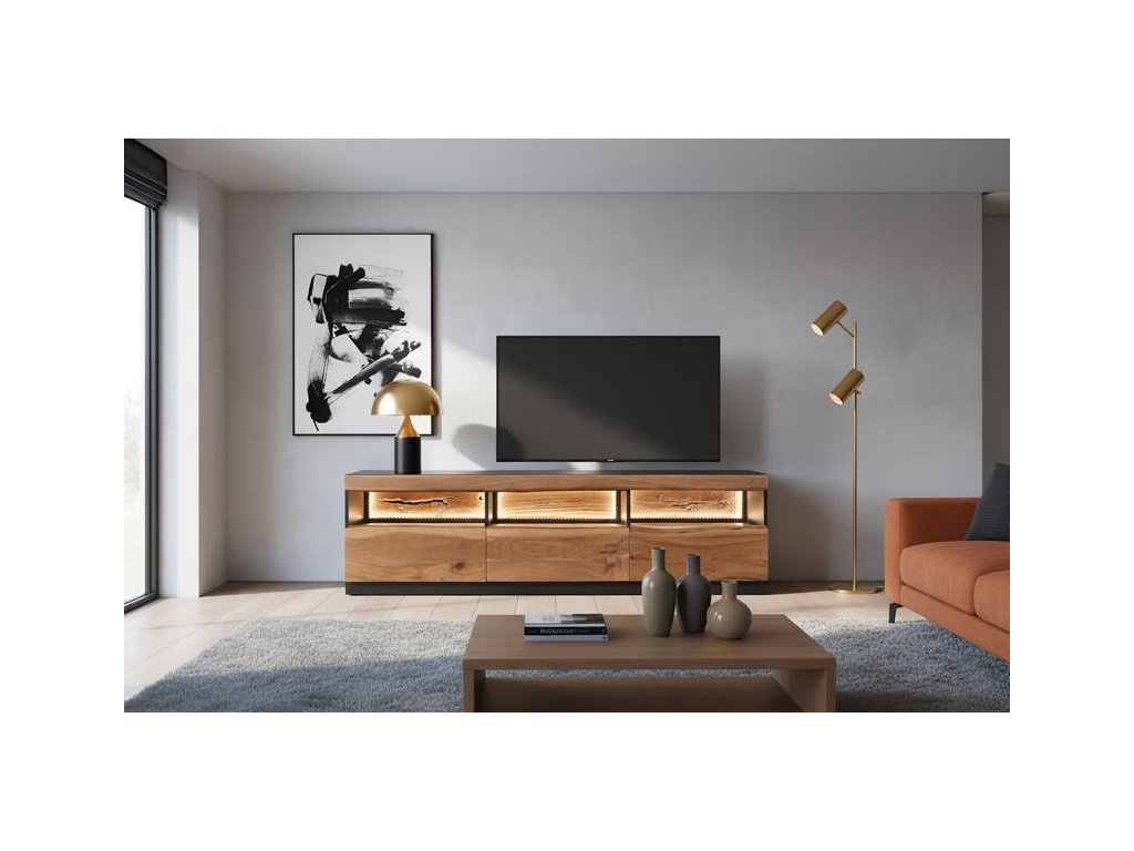 TV stolek Brenda je dokonalým spojením designu a funkčnosti, který zaujme každého milovníka kvalitního nábytku. Vyrobený z masivního akáciového dřeva, stolek nabízí nejen dostatek prostoru pro vaši televizi a elektroniku, ale také moderní vzhled, který se skvěle hodí do jakéhokoli interiéru. Jeho stylový design a podsvícení dodávají stolku unikátní charakter a atmosféru, která vynikne především v tmavších prostorách. TV stolek Brenda je ideální volbou pro ty, kteří hledají kvalitní a vizuálně atraktivní nábytek s moderním dotykem.