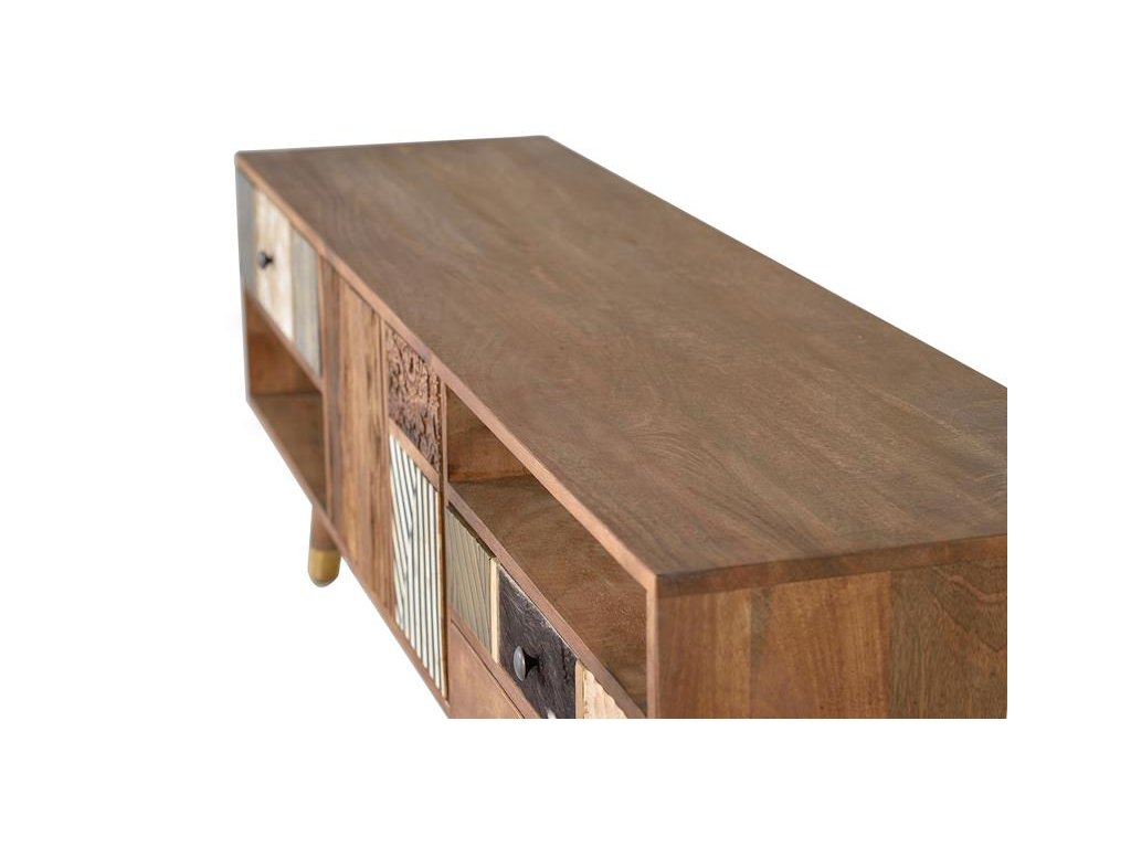Designový TV stolek Felicity je výjimečný kus nábytku, který okamžitě oživí váš interiér. Vyrobeno z kvalitního masivního mangového dřeva a doplněno o barevné prvky, působí živě a zároveň přirozeně. Jeho praktické zásuvky a otevřené police nabízí dostatek úložného prostoru pro multimediální zařízení či doplňky. Tento stolek je ideální volbou pro ty, kdo chtějí do svého domova vnést styl, barvu a kvalitní řemeslné zpracování.