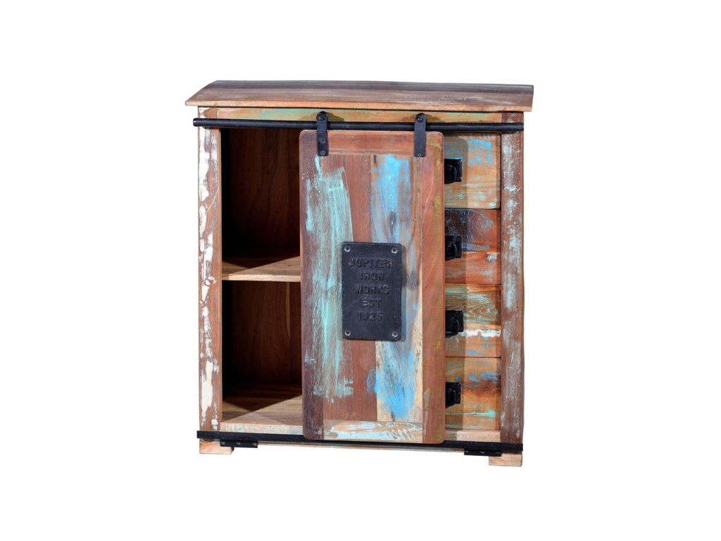 Industriální komoda Lola zaujme na první pohled svým autentickým vzhledem a výraznou strukturou recyklovaného dřeva. Masivní zpracování v kombinaci s kovovými prvky dodává komodě pevnost a výrazný industriální charakter, který skvěle zapadne do loftových, retro i moderních interiérů. Každý kus je jedinečný, s viditelnými znaky původního použití dřeva, což dodává nábytku osobitý šarm. Komoda nabízí dostatek úložného prostoru a díky svému stylovému provedení se stane výrazným designovým prvkem každé místnosti.