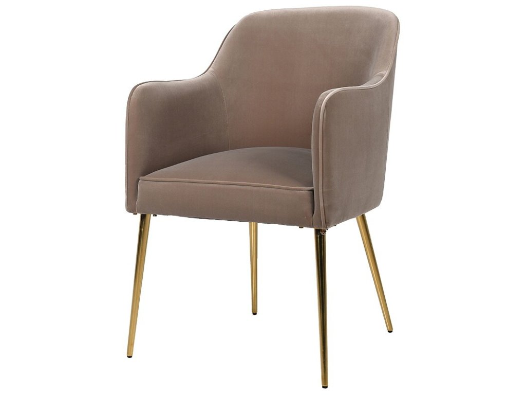 Luxusní čalouněná židle Swivel s elegantními zlatými nožkami.