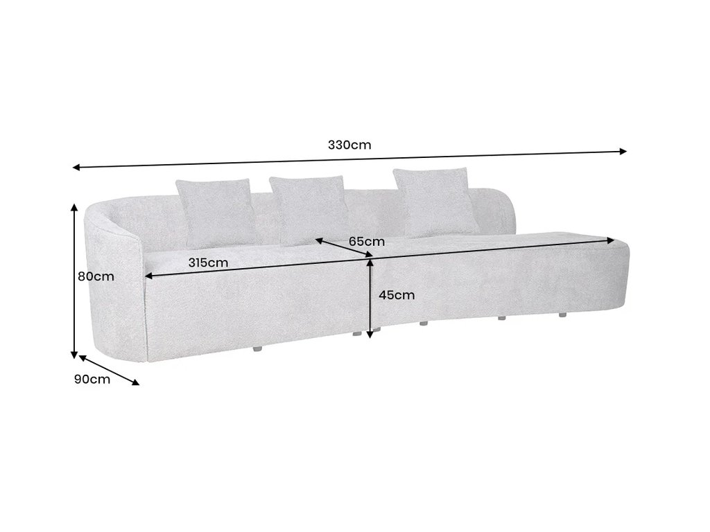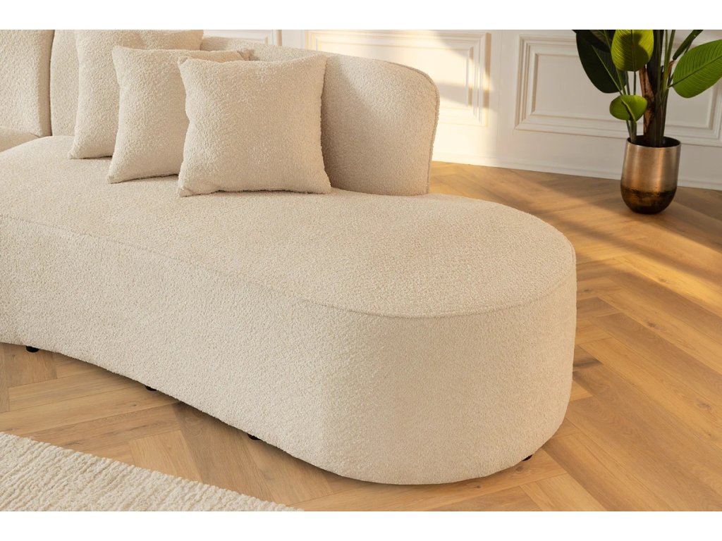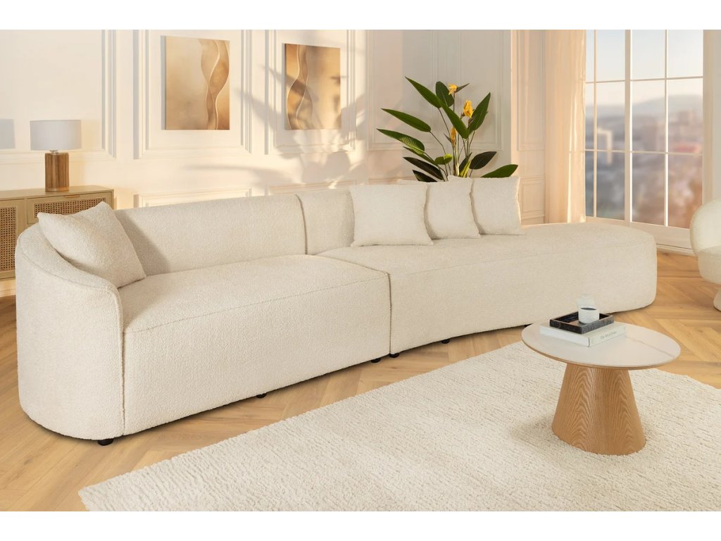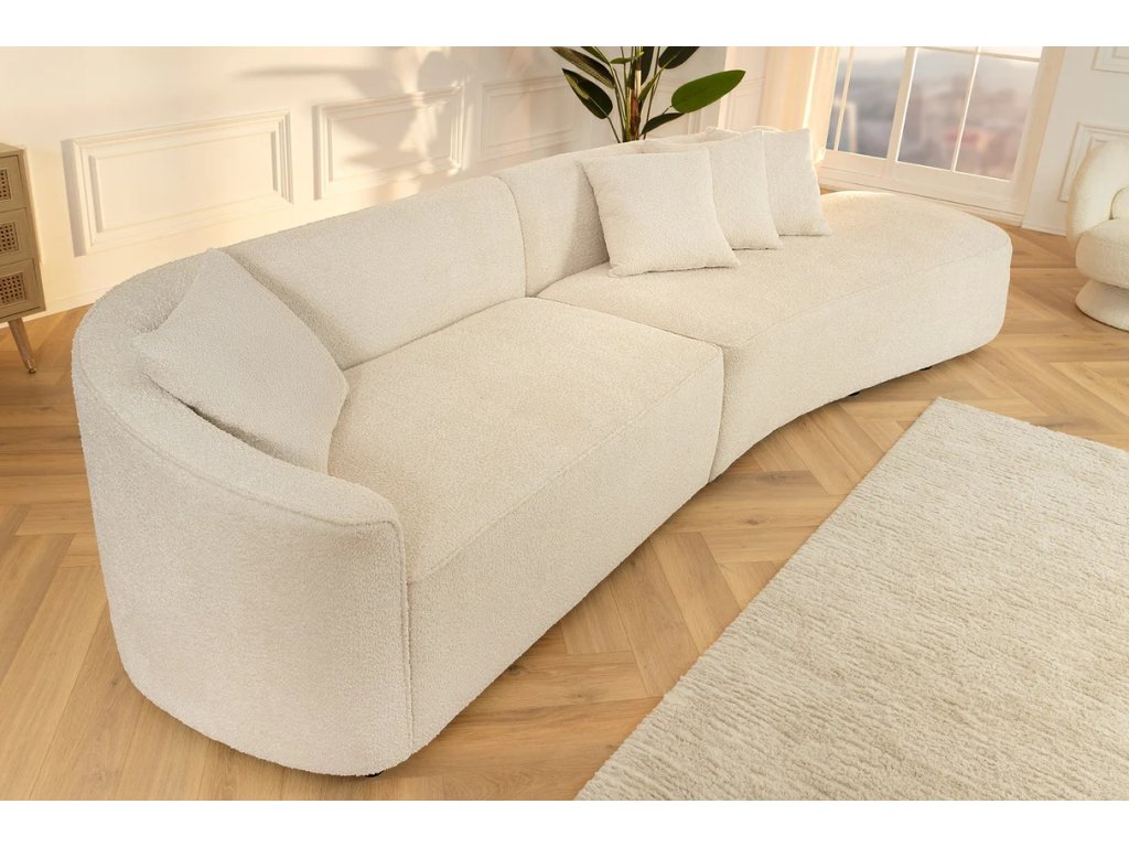 Designová prostorná pohovka Asta je ideální volbou pro ty, kteří hledají kombinaci stylu, komfortu a velkorysého prostoru. Měkké bouclé čalounění v béžovém odstínu působí elegantně a příjemně na dotek, zatímco kvalitní pěnové polstrování zajišťuje pohodlí při sezení i lenošení. Díky XXL šířce nabízí pohovka dostatek místa pro natažení, odpočinek i posezení s rodinou nebo přáteli. Nízké nohy podtrhují moderní siluetu a čtyři dekorativní polštáře zvyšují komfort i útulnost celého prostoru. Asta se skvěle hodí do moderních a minimalistických interiérů, kde je kladen důraz na pohodlí a velkorysé řešení obývacího prostoru.