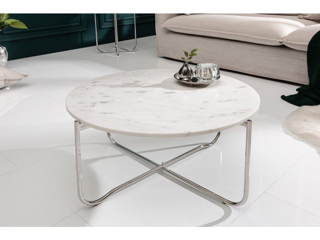 Luxusní konferenční stolek Marble 62cm bílý mramor/stříbrný rám