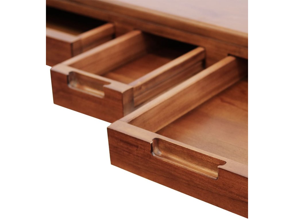 Konzolový stolek Alvora zaujme svým nadčasovým designem a precizním zpracováním. Vyrobený z kvalitního mahagonového dřeva vyniká sytým odstínem a jemnou strukturou. Tři prostorné zásuvky nabízí praktické úložné řešení pro drobné předměty, zatímco elegantní linie a klasická silueta dodávají stolku luxusní a reprezentativní vzhled. Ideální jako solitér do předsíně, obývacího pokoje či ložnice.