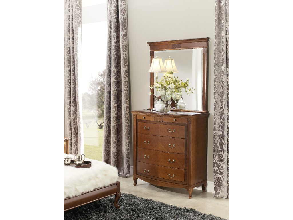 Povrch tohoto stylového nábytku je dýhovaný bukovým dřevem a jeho typickým prvkem je zdobná intarzie. Stylový designový vzhled připomínající starožitný nábytek ocení zejména milovníci klasického nábytku. Jedná se o kvalitní zakázkový nábytek s dlouholetou výdrží a vzhledem starožitného nábytku.