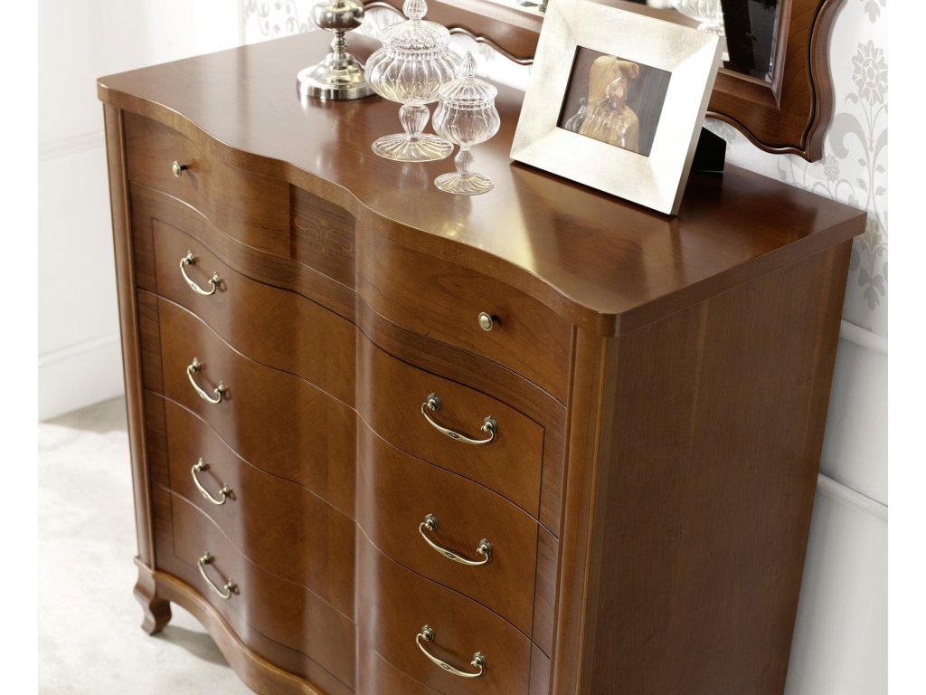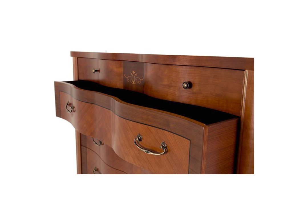 Povrch tohoto stylového nábytku je dýhovaný bukovým dřevem a jeho typickým prvkem je zdobná intarzie. Stylový designový vzhled připomínající starožitný nábytek ocení zejména milovníci klasického nábytku. Jedná se o kvalitní zakázkový nábytek s dlouholetou výdrží a vzhledem starožitného nábytku.