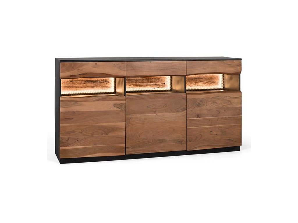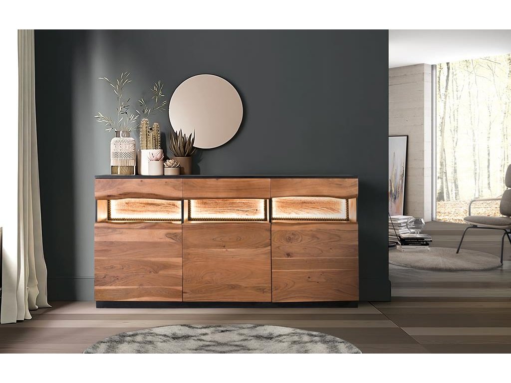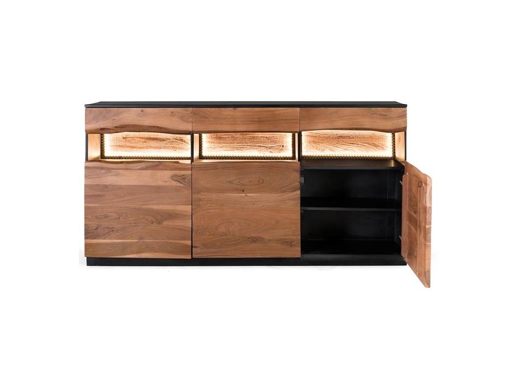 Komoda Alaska je výjimečným kouskem, který kombinuje robustnost masivního akáciového dřeva s moderním designem. Se třemi zásuvkami a třemi dvířky poskytuje dostatek úložného prostoru pro různé předměty. Její stylový vzhled doplňuje efektní podsvícení, které přidává komodě na jedinečnosti a vyniká zejména v tmavších interiérech. Masivní dřevo akácie zaručuje odolnost a dlouhou životnost, zatímco celkový design komody Alaska dodá vašemu prostoru sofistikovaný a moderní nádech. Tento kus nábytku je ideální pro ty, kdo hledají kombinaci funkčnosti, stylu a vizuálního efektu.