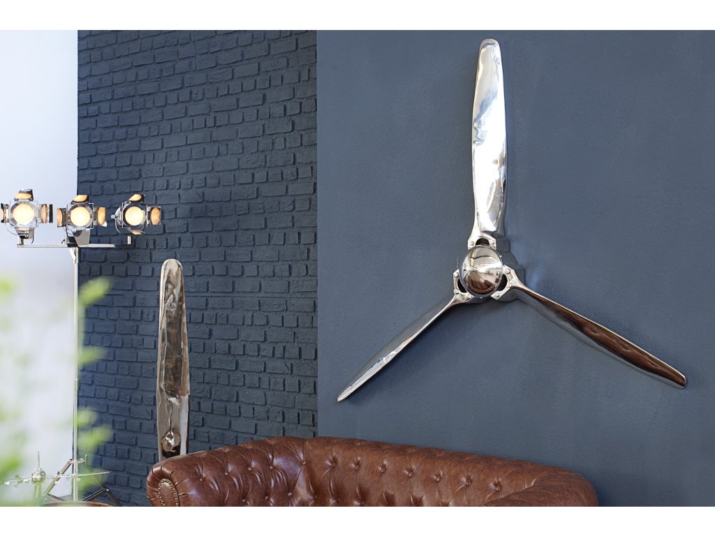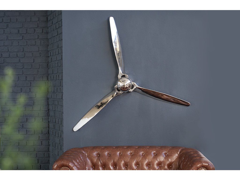 Stylová dekorace v podobě hliníkové vrtule o průměru 60cm je ideální volbou do moderně či průmyslově zařízených interiérů. Rozměry: 60cm x 60cm x 8cm.