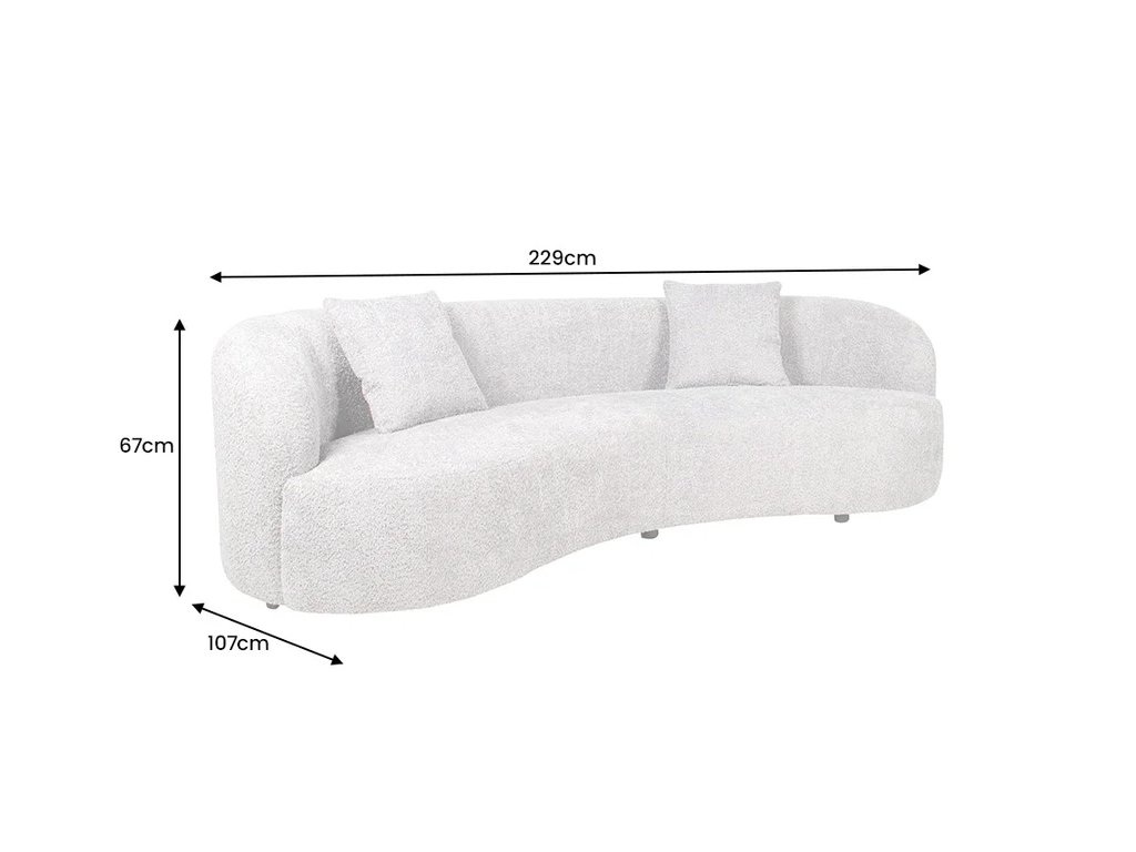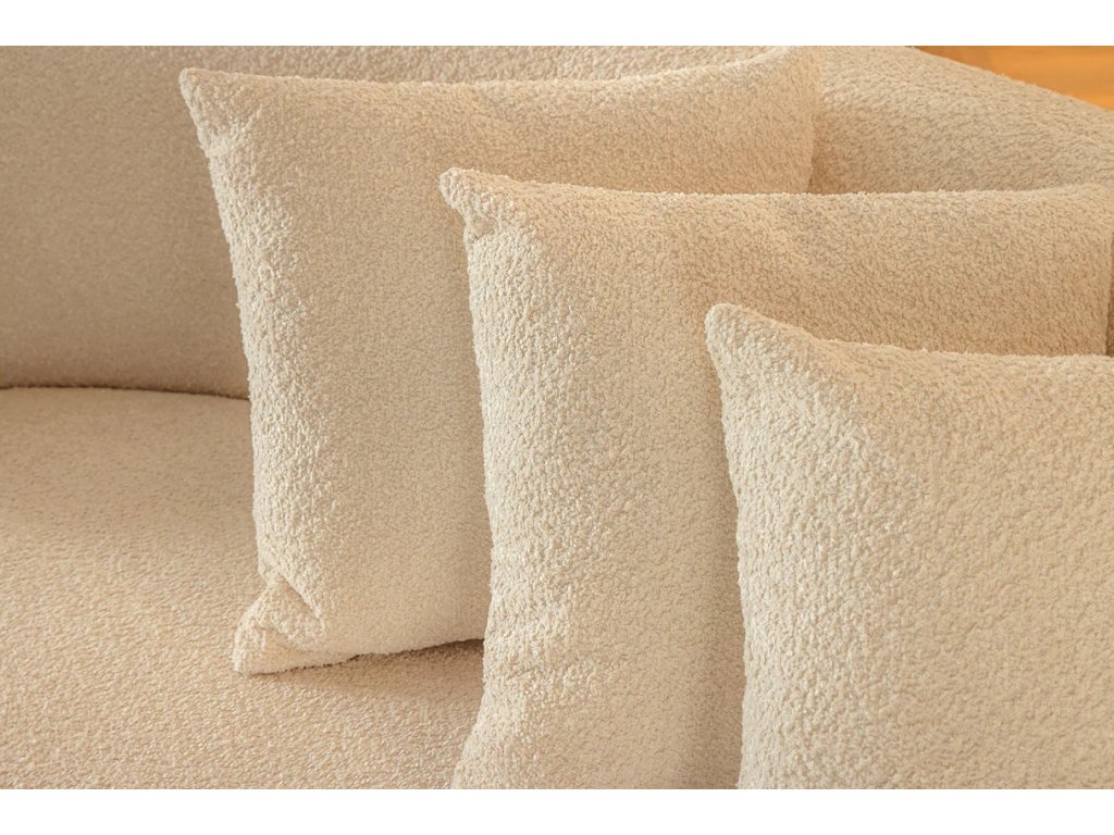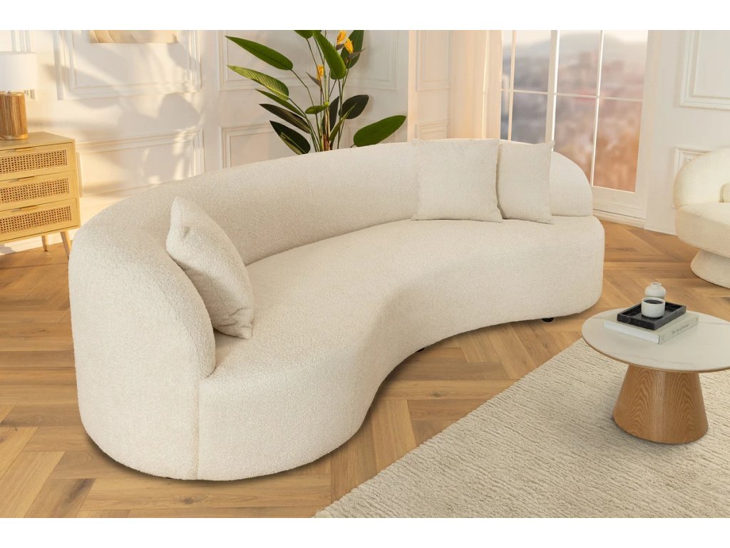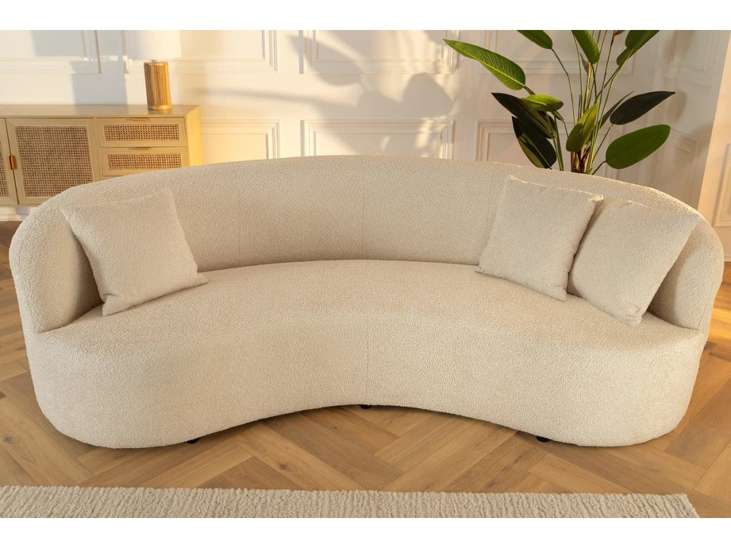 Moderní pohovka Asta 230cm spojuje nadčasový moderní design s maximálním komfortem pro každodenní odpočinek. Měkké bouclé čalounění v béžové barvě působí luxusně a zároveň vytváří útulnou atmosféru. Prostorný sedák s kvalitním pěnovým polstrováním nabízí pohodlí při sezení i lenošení, zatímco černé nohy podtrhují čistý a současný vzhled pohovky. Součástí balení jsou tři dekorativní polštáře, které zvyšují komfort i estetickou hodnotu. Asta je ideální volbou pro moderní obývací pokoje, kde se klade důraz na styl, kvalitu a pohodlí.