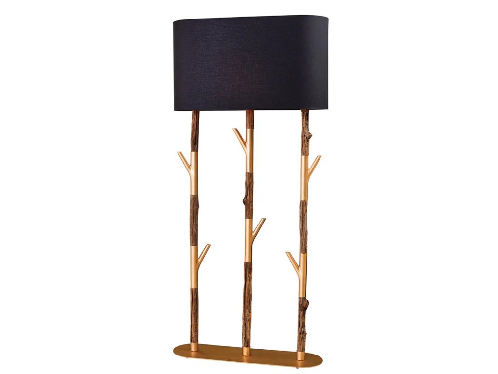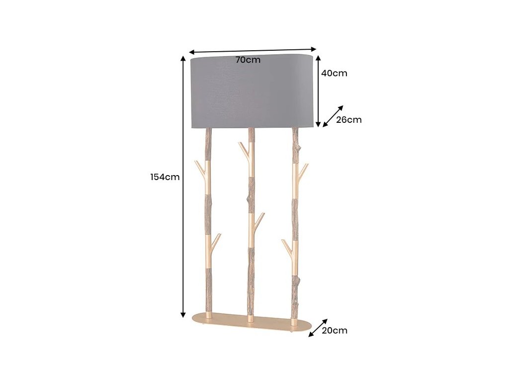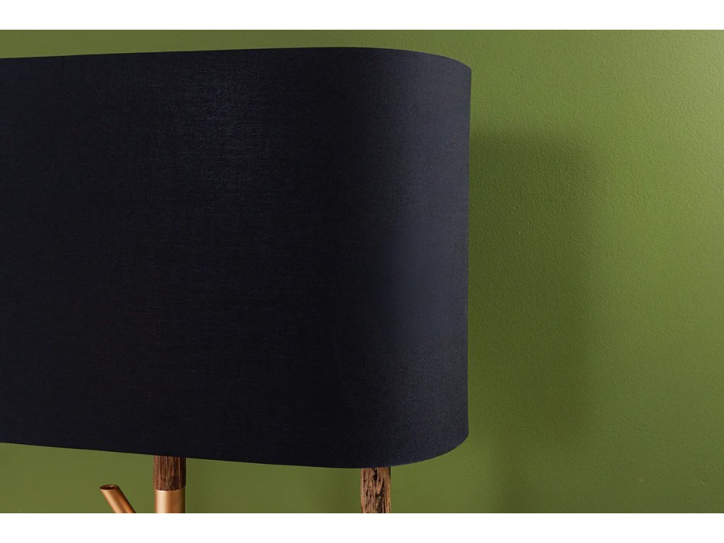 Stojací lampa Elysia spojuje přírodní prvky s moderním designem. Stínidlo má vnější černou a vnitřní zlatou barvu, což vytváří kontrastní, ale zároveň harmonický světelný efekt. Konstrukce je vyrobena z kombinace železného dřeva a kvalitního syntetického materiálu. Kabel o délce 210 cm umožňuje flexibilní umístění lampy v místnosti. Výška od podlahy ke stínidlu činí 114 cm. Díky svému zpracování je lampa ideálním solitérem pro zvýraznění atmosféry interiéru.