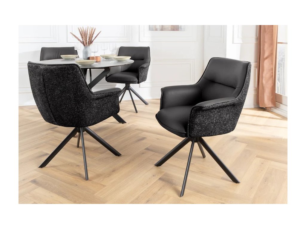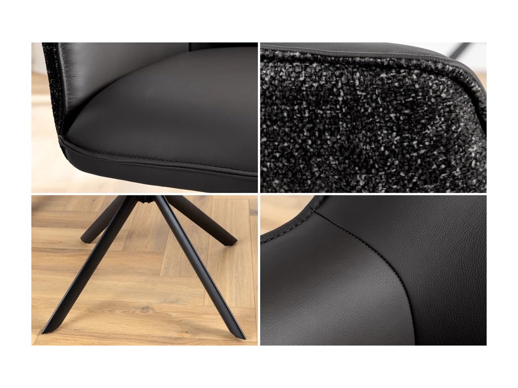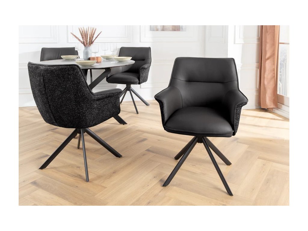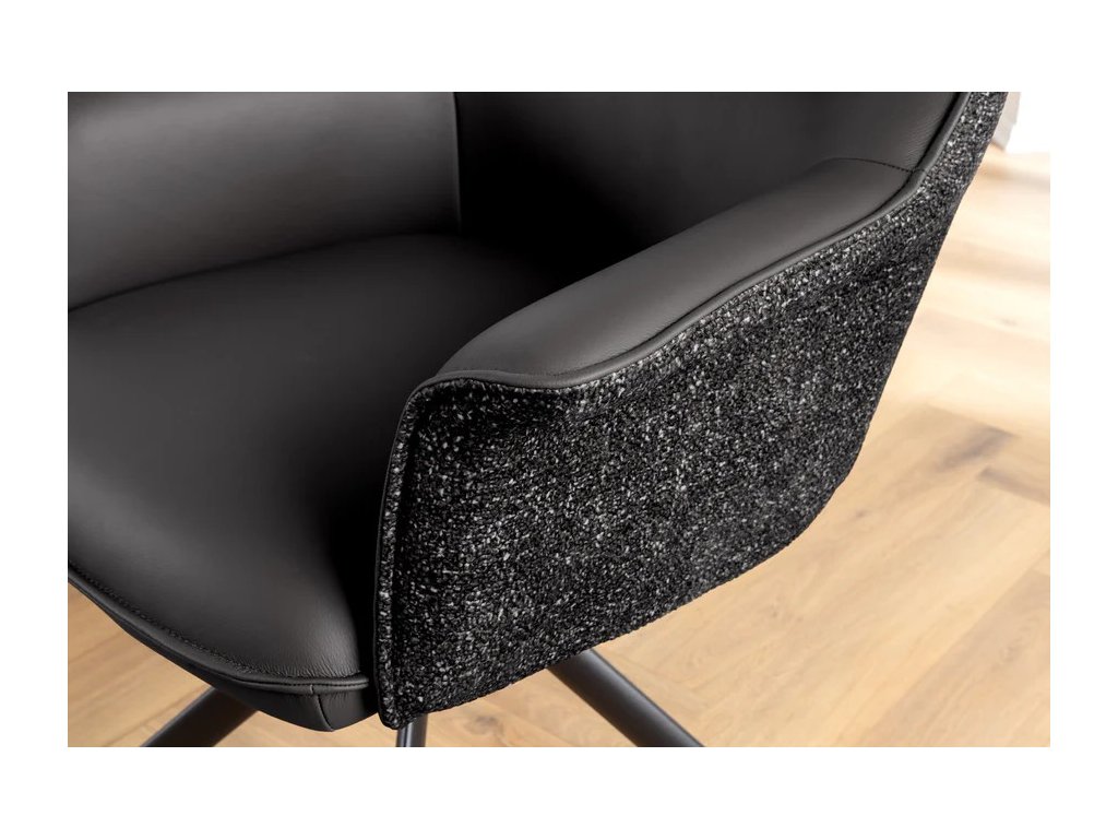 Moderní otočná židle Lucinious 80° s područkami – černá kůže a textilní potah