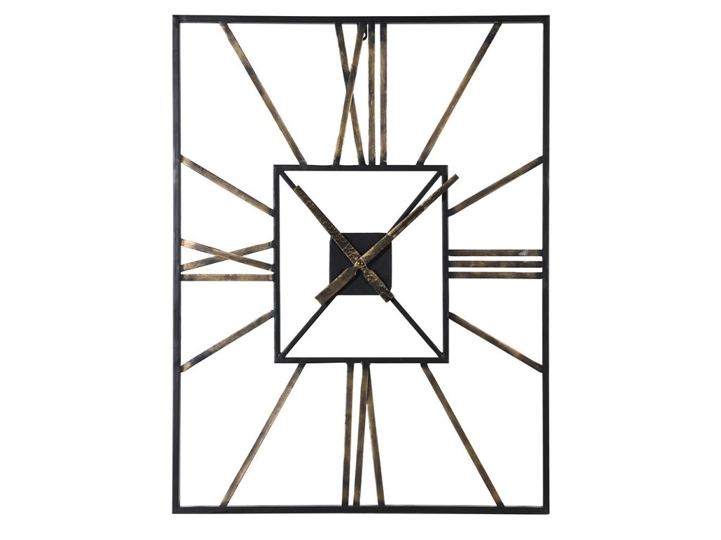 Industriální kovové hodiny Nick 70cm černé se zlatou patinou