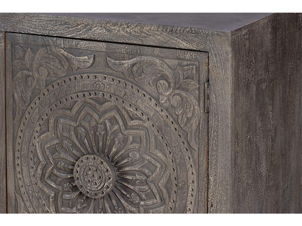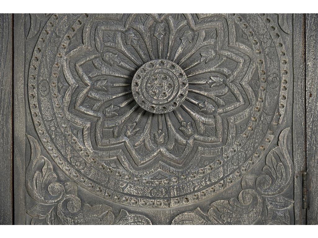 Skříňka Ofelia je nádherným příkladem tradičního řemesla a orientálního designu v moderním provedení. Vyrobená z kvalitního masivního mangového dřeva, vyniká svojí pevností, trvanlivostí a přirozenou kresbou dřeva. Každý kus je originál, zdobený bohatě vyřezávanými detaily, které jsou pečlivě provedeny ručně. Vintage povrchová úprava dodává skříňce autentický a časem ověřený vzhled. Díky své univerzální velikosti je ideálním doplňkem do obývacího pokoje, ložnice či předsíně, kde vytvoří působivý vizuální akcent a zároveň poskytne praktický úložný prostor.