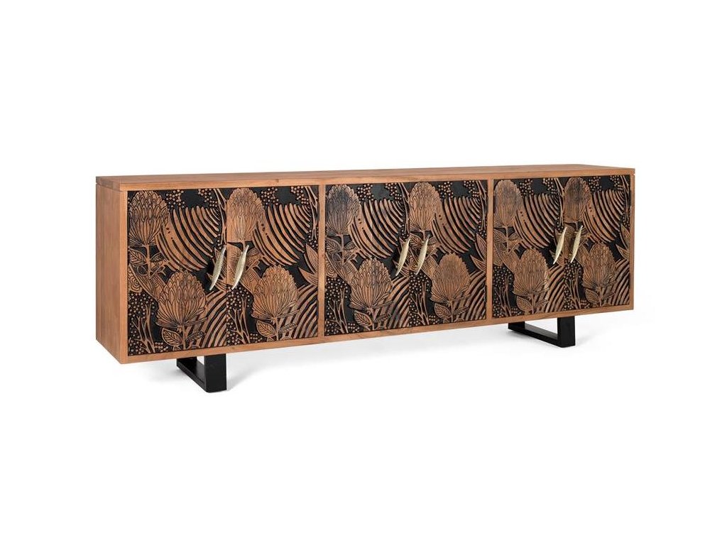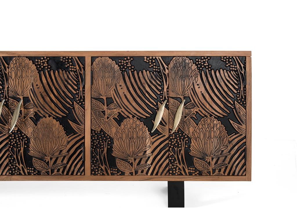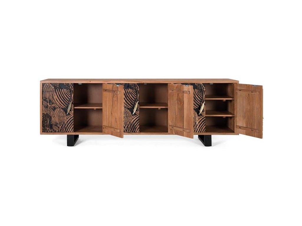 TV stolek Hansini je jedinečný nábytkový kousek, který do vašeho interiéru přinese exotickou atmosféru a dotek dalekého Východu. Vyroben z masivního akáciového dřeva, zaujme svojí přirozenou kresbou, bohatými barevnými tóny a precizním zpracováním. Jeho orientální charakter podtrhují detailní vyřezávané prvky, které z něj dělají nejen praktický, ale také dekorativní doplněk. Díky dostatečně velkému úložnému prostoru, ve formě dvířek je ideální pro uložení elektroniky, médií i doplňků. Hansini se hodí do interiérů v boho, orientálním či eklektickém stylu, kde vytvoří teplý a osobitý vizuální dojem.