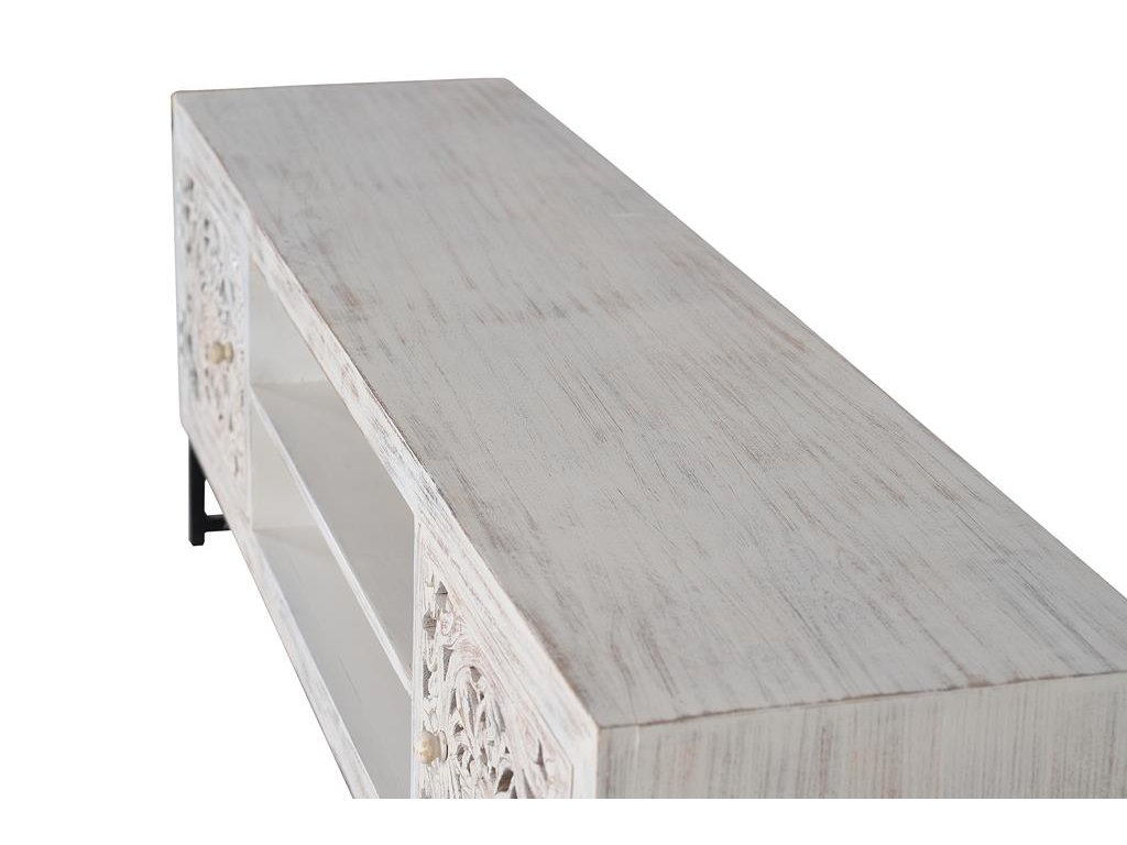 Orientální TV stolek Nina je vyjímečný kus nábytku, který kombinuje autentický orientální design s funkčností moderního bydlení. Vyrobeno z kvalitního masivního mangového dřeva, vyniká svou pevností, přirozenou texturou a bohatými tóny dřeva, které vytvářejí teplou a příjemnou atmosféru v interiéru. Hlavní dominantou tohoto TV stolku jsou detailně ručně vyřezávané ornamenty, které každému kusu dodávají jedinečný charakter. Vintage povrchová úprava umocňuje historický nádech a činí z každého stolku originální umělecký kousek. Kromě estetické hodnoty nabízí stolek také praktický úložný prostor ve formě skříněk a polic pro multimediální zařízení, knihy nebo jiné doplňky. TV stolek Nina je ideální pro milovníky orientálního stylu, kteří si potrpí na kvalitní řemeslné zpracování a vyjímečný design.