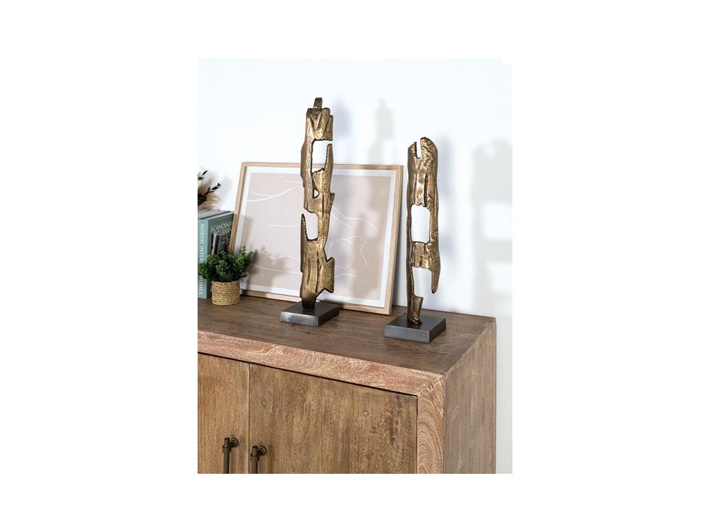 Dekorativní sošky Brea jsou výjimečným designovým doplňkem, který vnese do vašeho domova eleganci a špetku industriální estetiky. Tento set dvou sošek je vyroben z kvalitního hliníku a pokryt výraznou zlatou povrchovou úpravou, která jim dodává luxusní vzhled a dokonalý lesk. Jejich moderní tvar a umělecké provedení z nich dělají univerzální prvek – vhodný na poličku, komodu, pracovní stůl či jako součást originální dekorace v obýváku. Brea zaujme každého, kdo má smysl pro detail, originální design a má v oblibě kovové akcenty v interiéru. Díky svému nadčasovému stylu se hodí do moderních, industriálních i eklektických prostor.