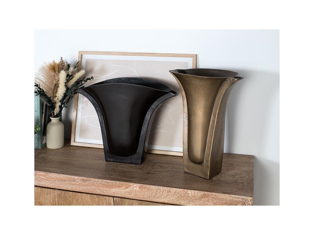 Set 2 designových váz Lenora přináší do vašeho domova nadčasovou kombinaci elegance a industriálního stylu. Vyrobeno z kvalitního hliníku, tyto vázy působí moderně a zároveň robustně, přičemž jejich hladký kovový povrch dodává prostoru decentní lesk. Svým minimalistickým tvarem a precizním provedením se perfektně hodí jako solitérní dekorace nebo jako součást větší kompozice. Ať už je umístíte na jídelní stůl, komodu nebo polici, vázy Lenora upoutají pozornost a zároveň přirozeně doplní moderní, industriální či eklektický interiér. Vhodné jsou nejen na květiny, ale také jako samostatné umělecké objekty.