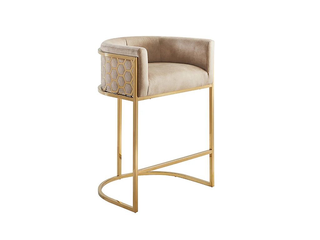 Dizajnová Art-Deco barová stolička Enna Gold béžová