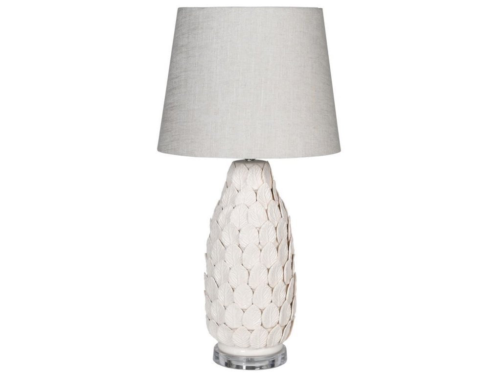 Dizajnová keramická lampa Leaf 70cm má telo tvorené z keramických lístkov.
