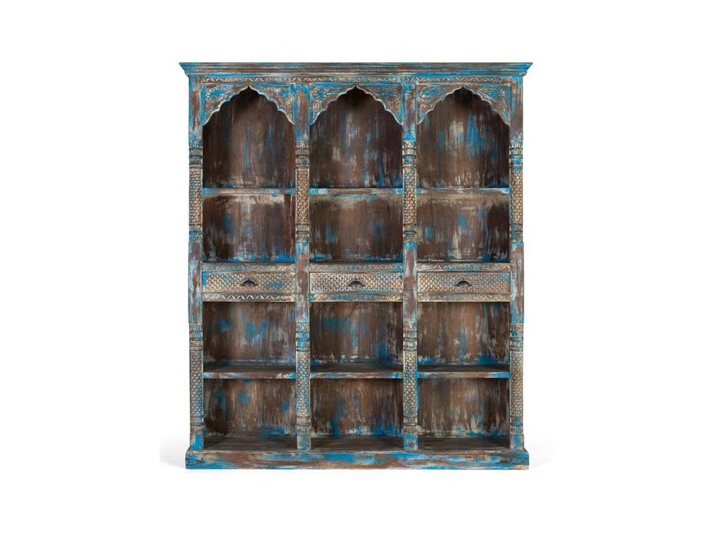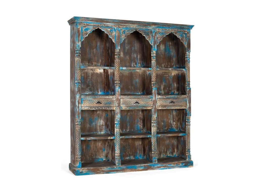Štýlová rustikálna knižnica Queniee 160x156cm - mangové drevo