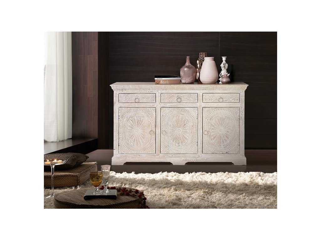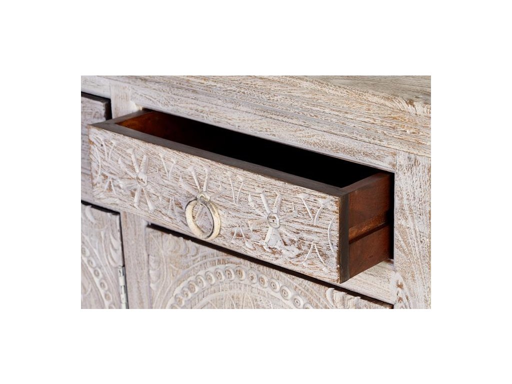 Komoda Luciana je výnimočný kúsok nábytku, ktorý spája orientálny šarm s vintage estetikou a precíznou ručnou prácou. Je vyrobená z kvalitného masívneho mangového dreva, ktoré zaručuje pevnosť, dlhú životnosť a jedinečný vzhľad. Charakteristickým prvkom tejto komody sú bohaté ručne vyrezávané ornamenty, ktoré jej dodávajú umelecký a autentický výraz. Svojím dizajnom vynikne v každej miestnosti a vytvorí elegantný a zároveň teplý domáci priestor. Komoda Luciana je ideálnou voľbou pre tých, ktorí hľadajú originálny nábytok s dušou a príbehom.