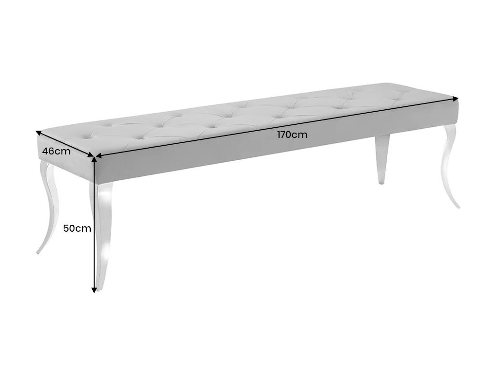 Lavica Garofalo prináša do interiéru nádych aristokratického prepychu v modernom kabáte. Bohato polstrované sedadlo očalúnené hebkým šedým zamatom zdobí klasické prešívanie, ktoré kontrastuje s leskom strieborných prehnutých nôh. Lavica je ideálna ako doplnkové sedenie k jedálenskému stolu, ale skvele poslúži aj ako štýlový solitér v hale alebo pri nohách postele v spálni.