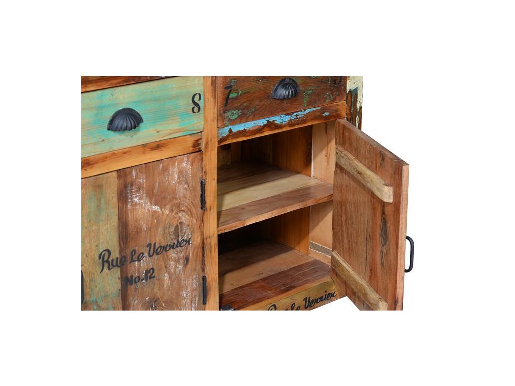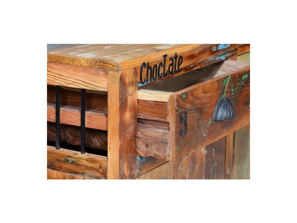 Designová skrinka Marisa je výrazný kúsok nábytku, ktorý zaujme na prvý pohľad. Vyrobená z kvalitného recyklovaného dreva, prináša do interiéru ekologický rozmer a jedinečný vzhľad plný charakteru. Jej robustná, masívna konštrukcia sa nesie v duchu industriálneho štýlu, zatiaľ čo retro detaily dodávajú skrinke teplo a osobitosť. Každý kus je originálny vďaka prirodzenej kresbe dreva a rôznorodosti použitých materiálov. Skrinka Marisa ponúka praktický úložný priestor a zároveň slúži ako dekoratívny prvok v moderných, loftových aj eklektických interiéroch.