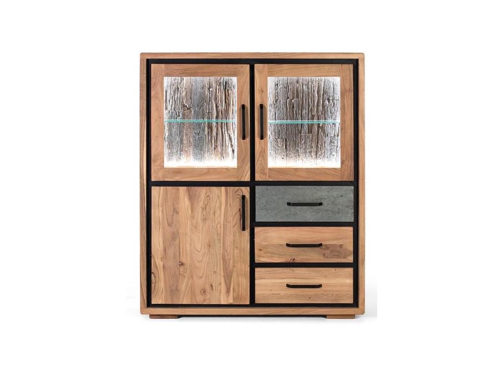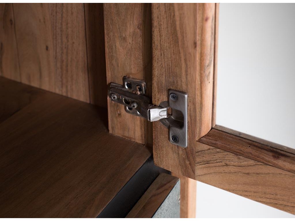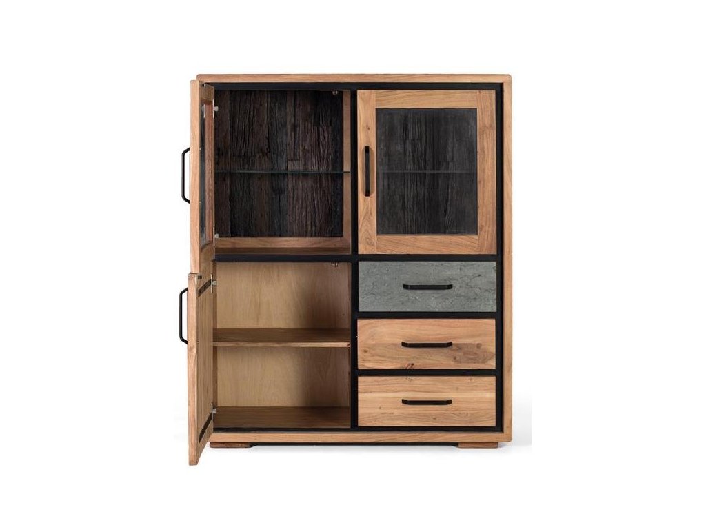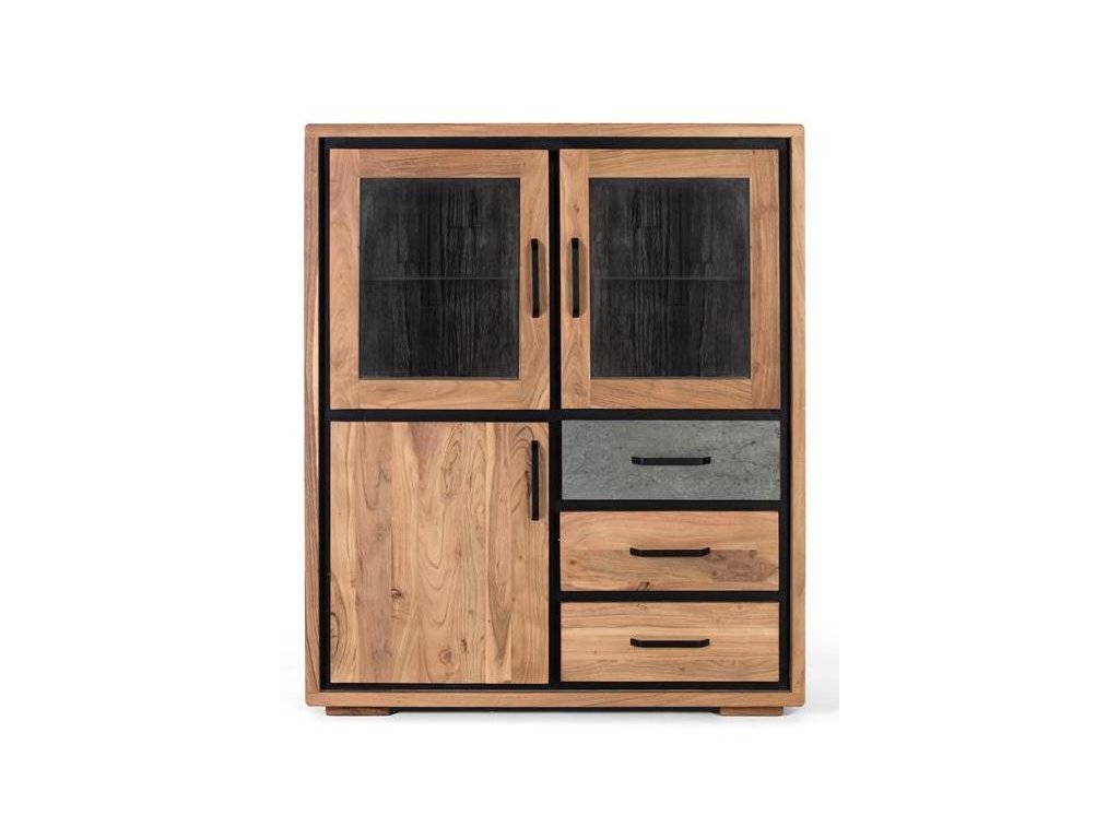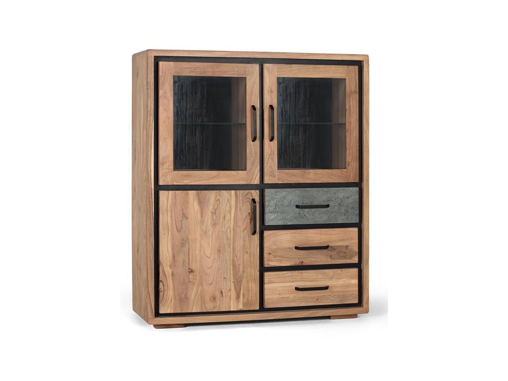 Skrinka Sierra je ideálnym riešením pre tých, ktorí hľadajú kombináciu elegancie a industriálneho charakteru. Vyrobená z kvalitného masívneho akáciového dreva, ponúka nielen odolnosť, ale aj krásnu textúru a farbu prírodného materiálu. Prednú časť zdobia presklené dvierka, ktoré umožňujú štýlovo vystaviť riad, knihy či dekorácie. Kovové detaily a pevná konštrukcia podčiarkujú industriálny charakter nábytku. Skrinka Sierra vynikne ako dominantný prvok v obývačke, jedálni či pracovni a dodá priestoru moderný, ale útulný vzhľad.