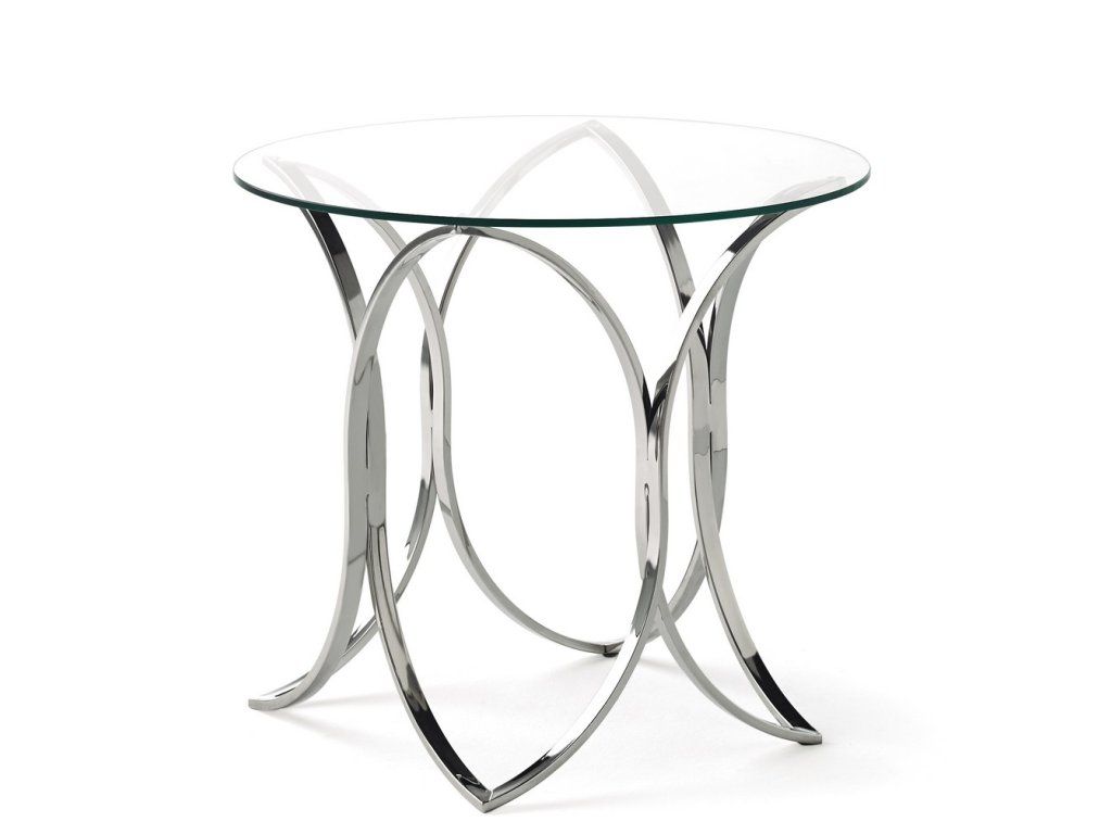 Moderný odkladací stolík Sierra s priemerom dosky 60cm je štýlovým príručným pomocníkom do obývacej izby k sedačke prípadne inam do interiéru napríklad ako podstava pod kvetináč. Stolík má kovové telo povrchom striebornej farby a doska je vyrobená z tvrdeného sklad. Stolík vyniká najmä svojou netradičnou podstavou a jej tvarmi.