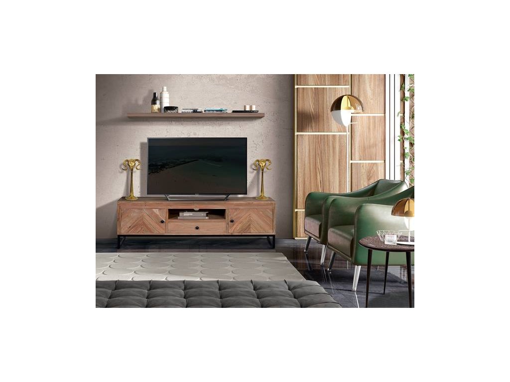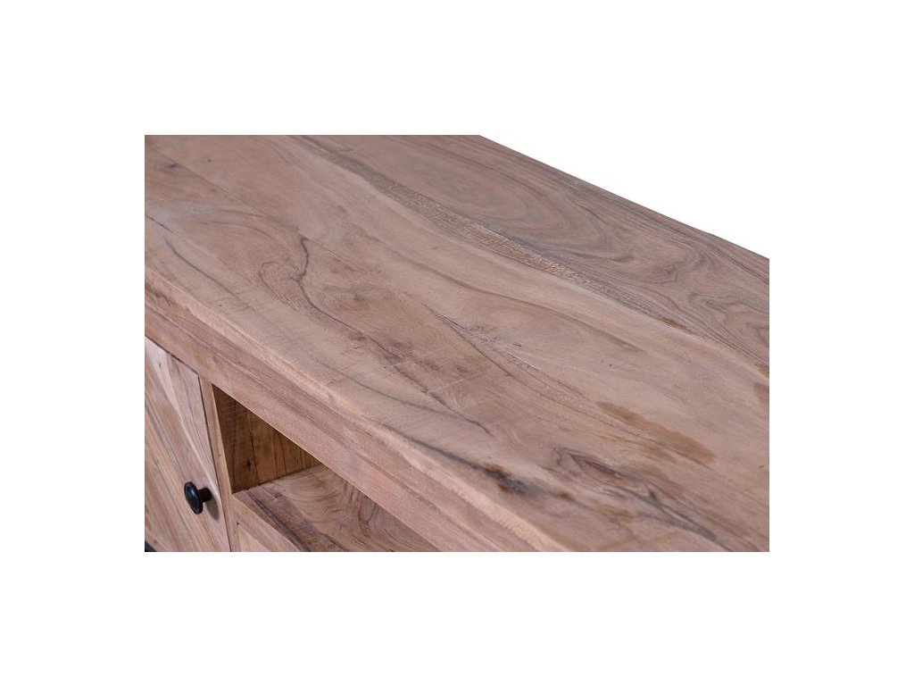 TV stolík Vanessa kombinuje moderný dizajn s industriálnym štýlom, čím vytvára praktický a zároveň esteticky príťažlivý doplnok do vašej obývacej izby. Masívne akáciové drevo dodáva stolíku pevnosť a prirodzenú krásu s výraznou štruktúrou dreva. Stolík ponúka dostatok miesta na televízor a zároveň praktické úložné priestory na multimediálne zariadenia alebo dekorácie. Jeho jednoduché, ale robustné línie podčiarkujú industriálny charakter, ktorý skvele zapadne do moderných interiérov s industriálnym alebo minimalistickým štýlom.