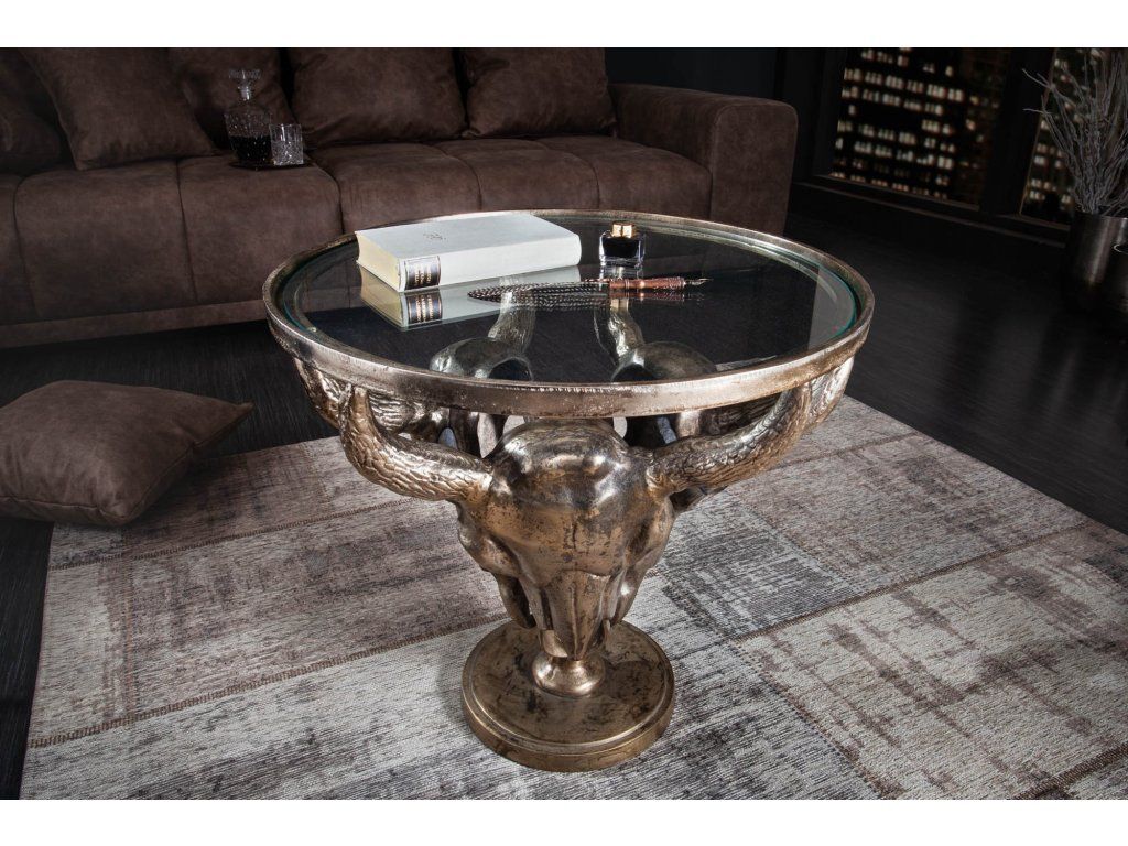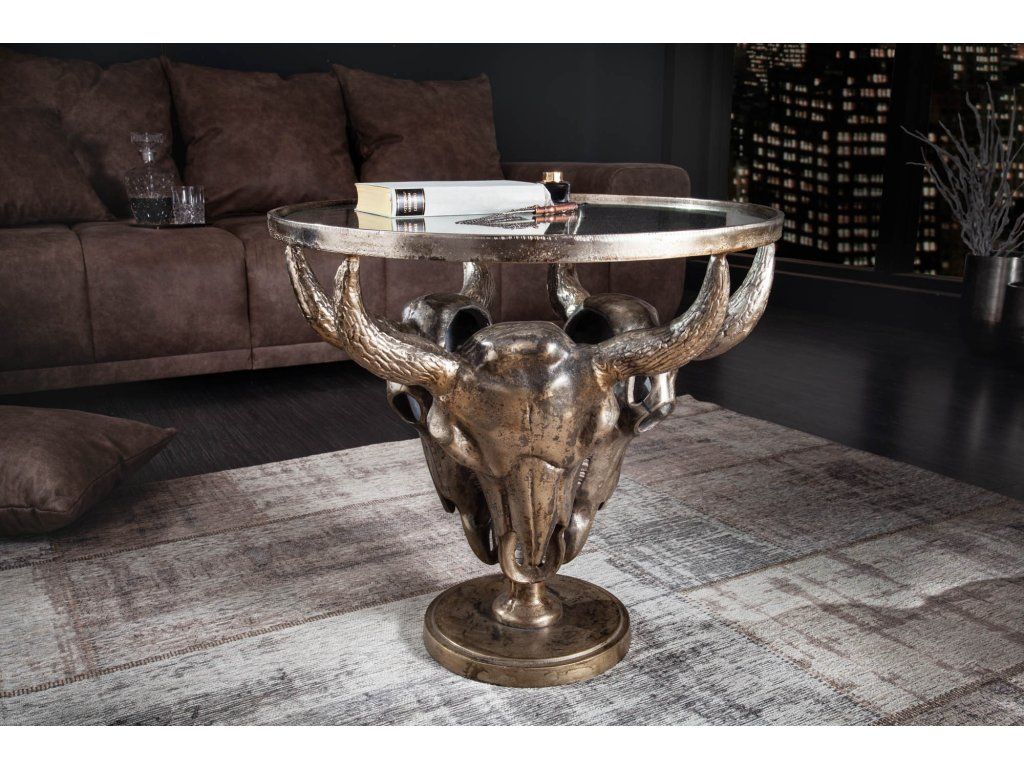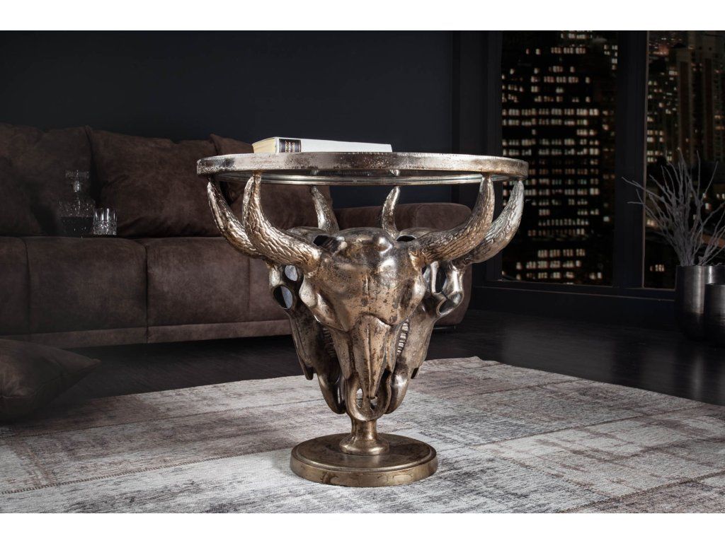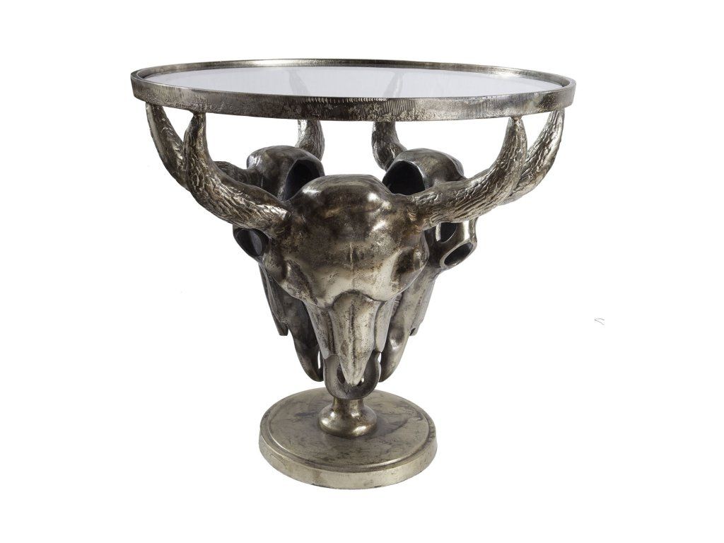 Extravagantný stôl Matador 56cm bronz je jedinečným doplnkom moderných a dokonca aj extravagantne zariadených izieb. Svoje miesto si nájde aj v priemyselných interiéroch. Lebka býka, ktorá je základňou stola, je vyrobená z hliníkovej zliatiny. Rozmery: 56 cm x 60 cm x 19 cm (ŠxVxH).