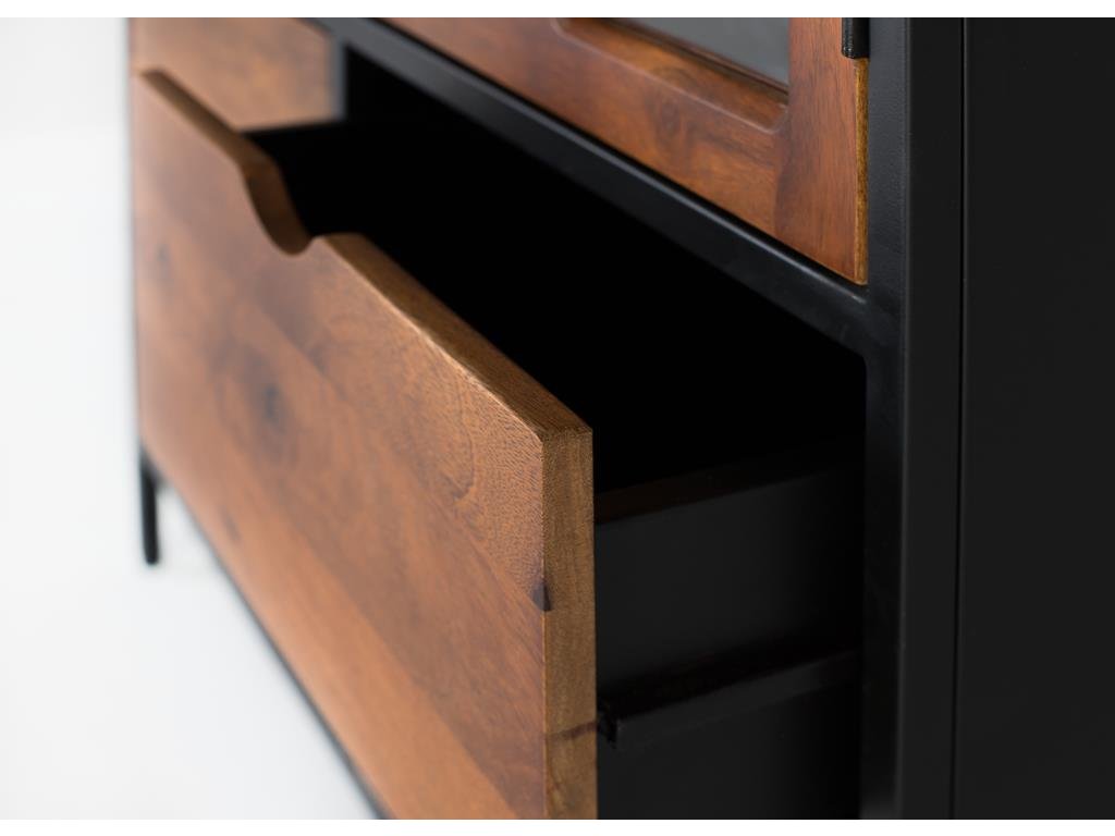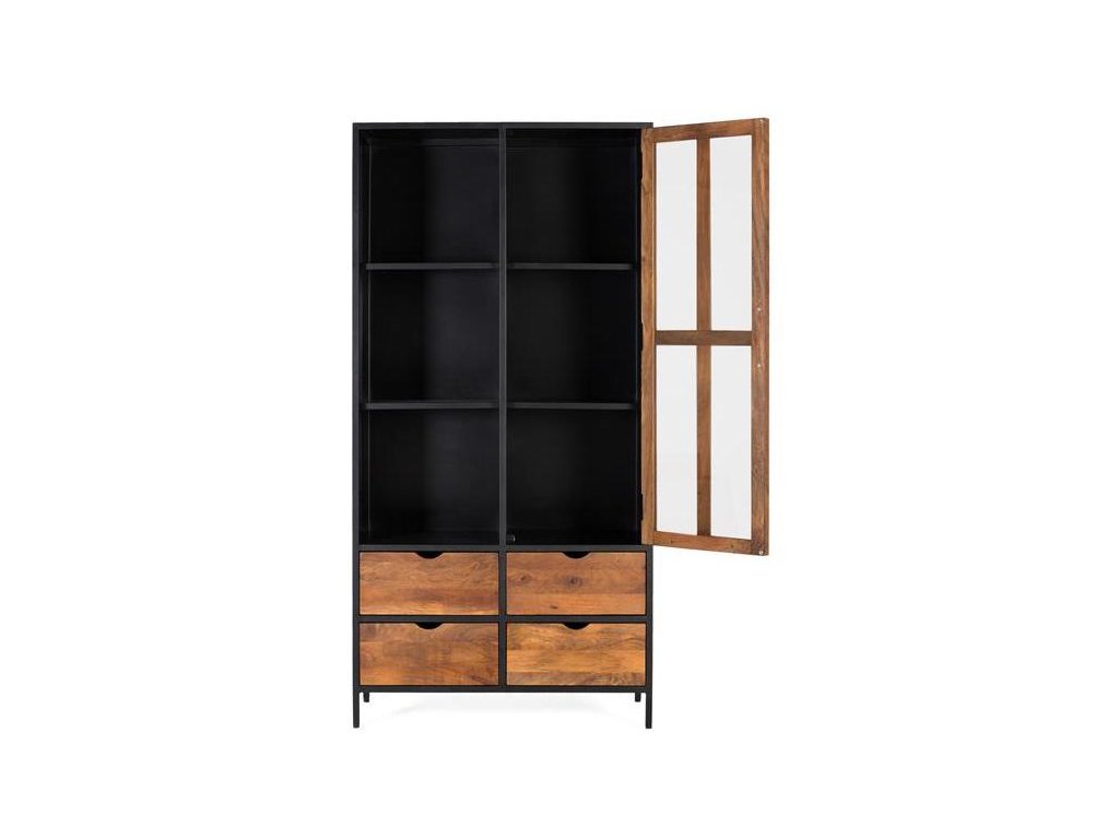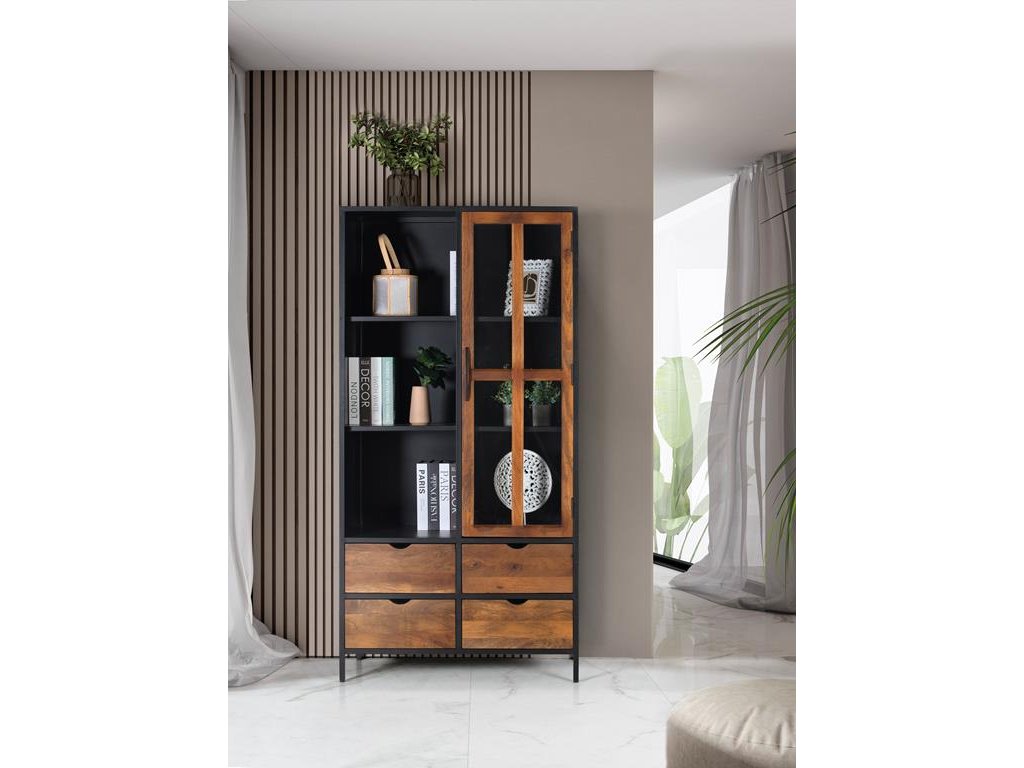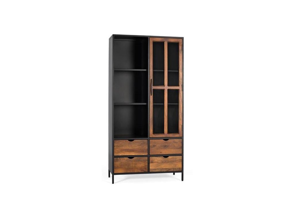 Vitrína Jazlyn je výnimočný industriálny doplnok pre každý moderný interiér. Vyrobená z kvalitného mangového dreva, vyniká svojou pevnosťou, prirodzenou textúrou a nadčasovým dizajnom. Kovové prvky a čisté línie podčiarkujú jej industriálny charakter, zatiaľ čo presklené dvierka umožňujú elegantne vystaviť knihy, porcelán či dekorácie. Vitrína ponúka dostatok úložného priestoru a zároveň slúži ako výrazný dizajnový prvok. Ideálna do obývačky, jedálne alebo pracovne, kde prinesie štýlový kontrast medzi funkčnosťou a estetikou.