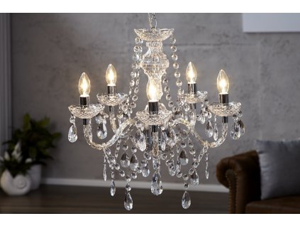 Luster v čiernom dizajne Karat má osvetlenie na piatich ramenách a je bohato zdobený akrylovými dekoratívnymi prvkami. Veľkosť: 54 cm x 53 cm (v x š). Farba: čierna, materiál: kov, akryl, zdroj svetla: 5 x E14 max. 25 W. Tento luster má objímky pre žiarovky energetickej triedy: A++ až E. Dodáva sa bez žiaroviek.