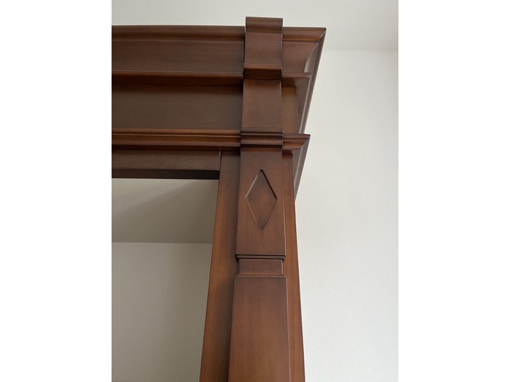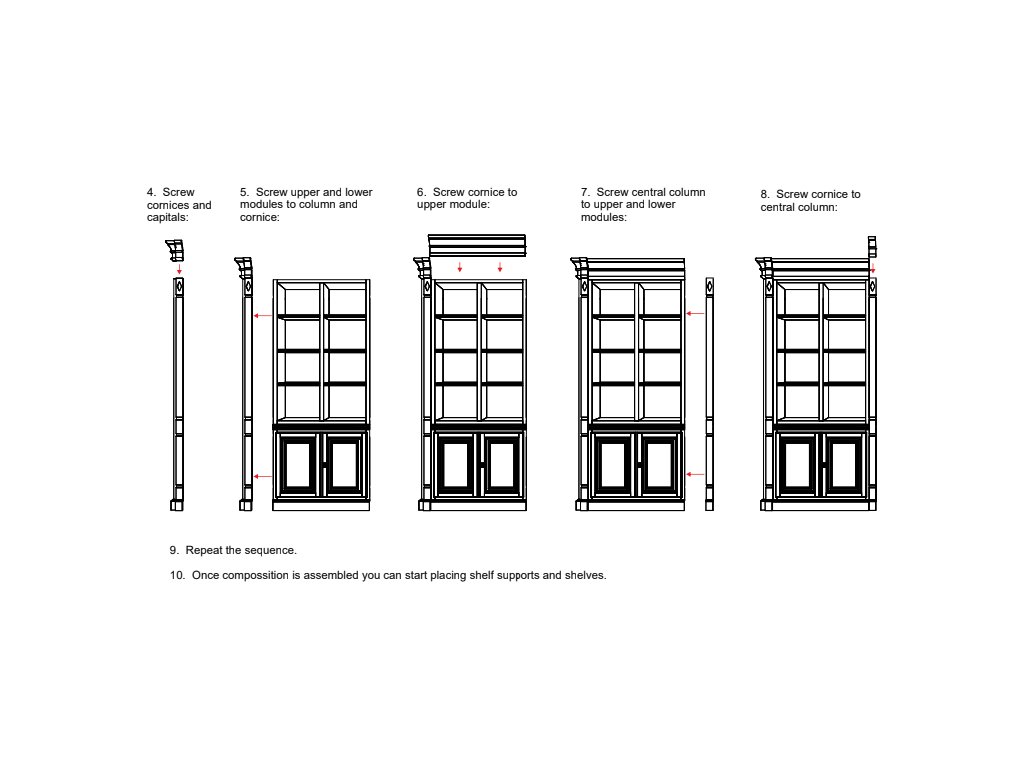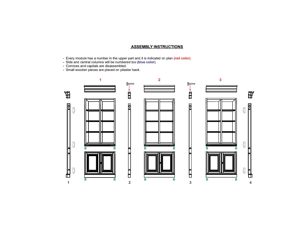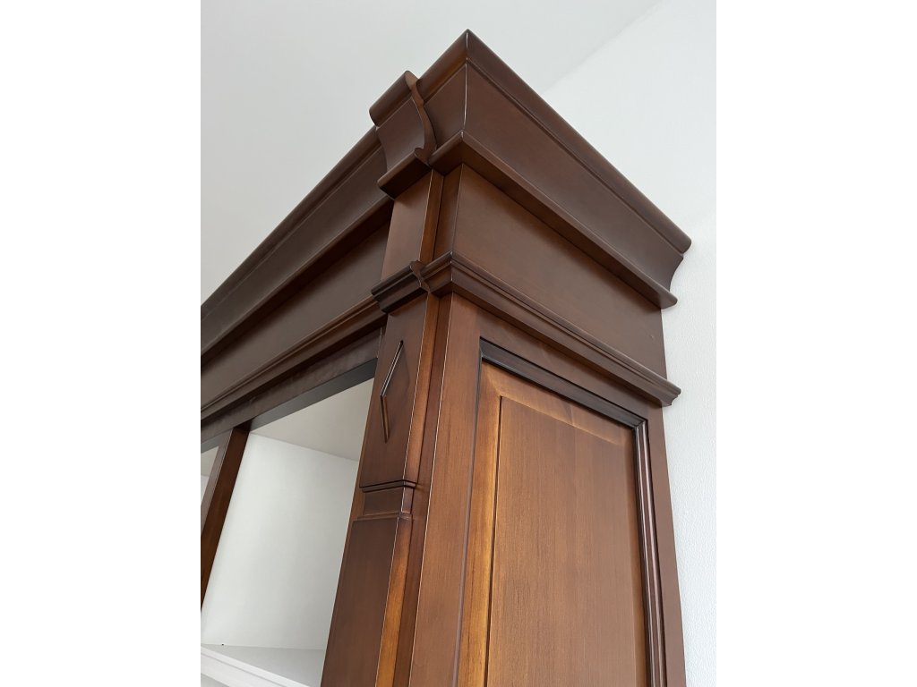 Technické informácie: Knižnica v klasickom luxusnom štýle, kombinácia otvorených políc a spodných uzavretých skriniek, určená na umiestnenie k stene, vhodná do obývacej izby, pracovne alebo knižnice.