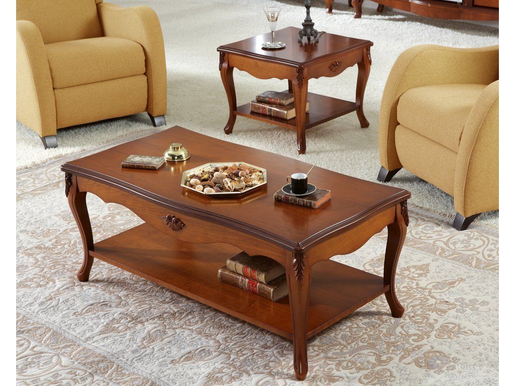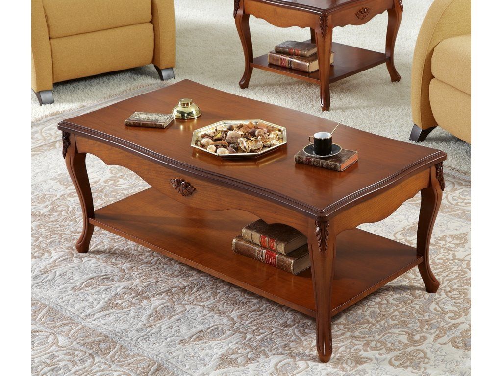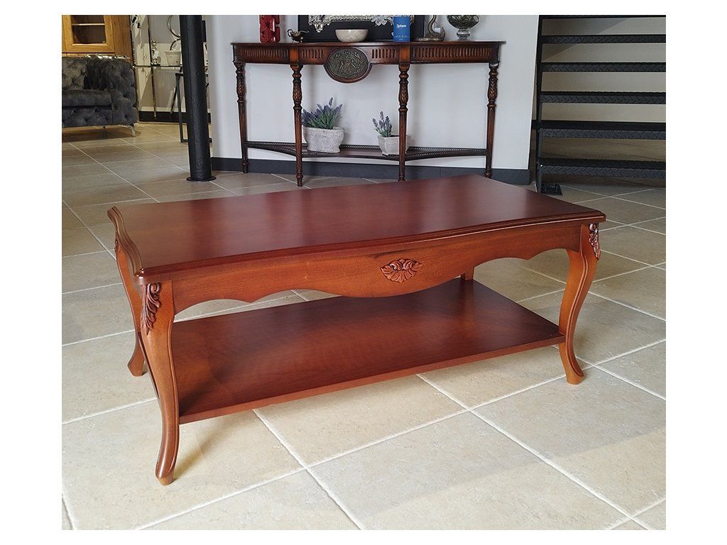 Rustikálny konferenčný stolík, široký 112 cm, patrí do kolekcie štýlového nábytku Elsa. Tento klasický konferenčný stolík obsahuje jednu spodnú policu a zdobený vyrezávaný dekor.